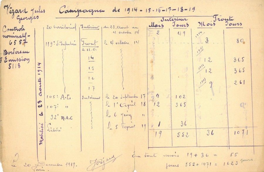 Né en 1877 à Paris, ce dernier fut mobilisé à l'âge de 37 ans dans le 119ème régiment d'infanterie, qui fut au cœur du combat sur le front de Verdun en 1916