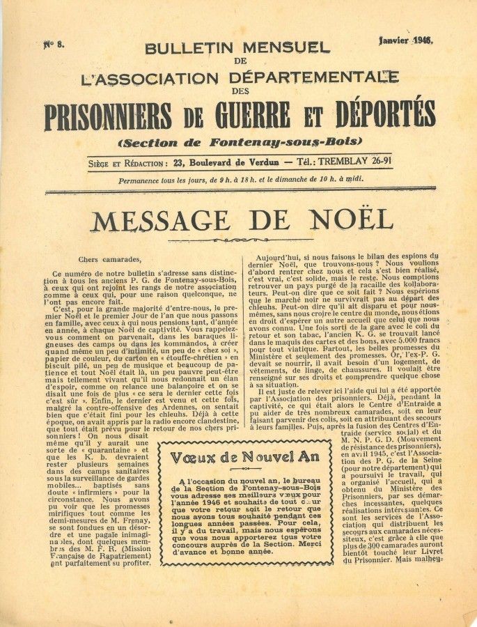 Parmi ces documents se trouvaient plusieurs exemplaires du Bulletin Mensuel de l'Association départementale des prisonniers de guerre et déportés .