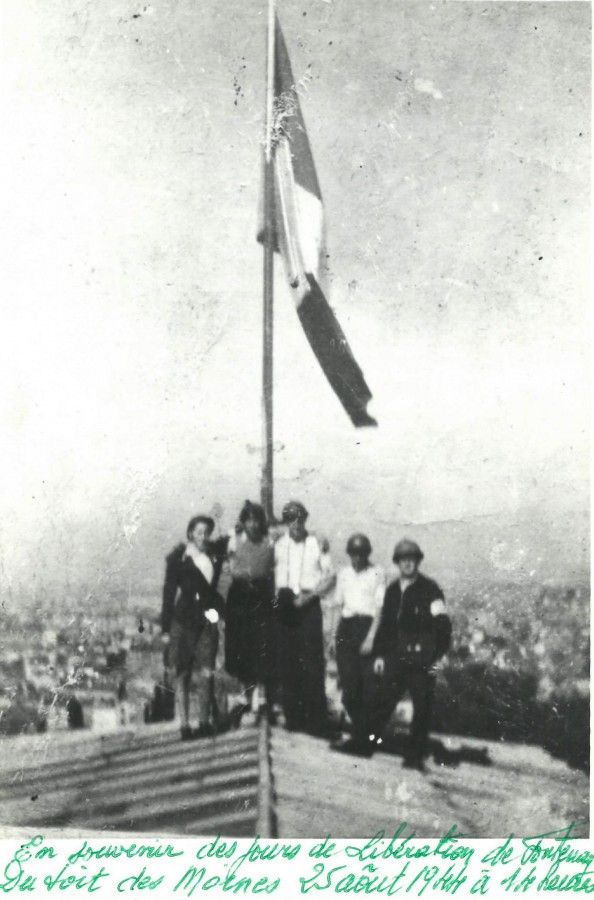 Ce cliché a été pris le 25 août 1944, jour de la Libération de la ville, sur le toit des Moines Franciscains (actuelle Maison du Citoyen).