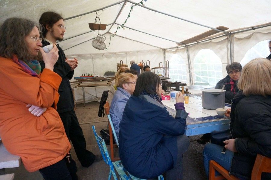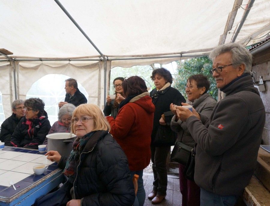 Après la visite du Parc des Carrières et de l'Hôtel de Ville, tous se sont retrouvés au vergers de l'ilôt autour d'une décoction bien méritée et préparée par Lucile.