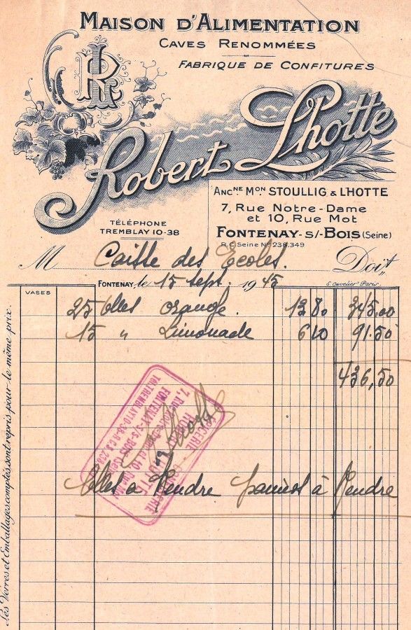 En 1913, M. Stoullig s’associe avec Robert Lhotte pour former la S° « Stoullig et Lhotte ». En 1927, une publicité vante leurs « bons produits alimentaires, l’épicerie fine, comestibles, spécialité de confitures fabriquées à la maison ».