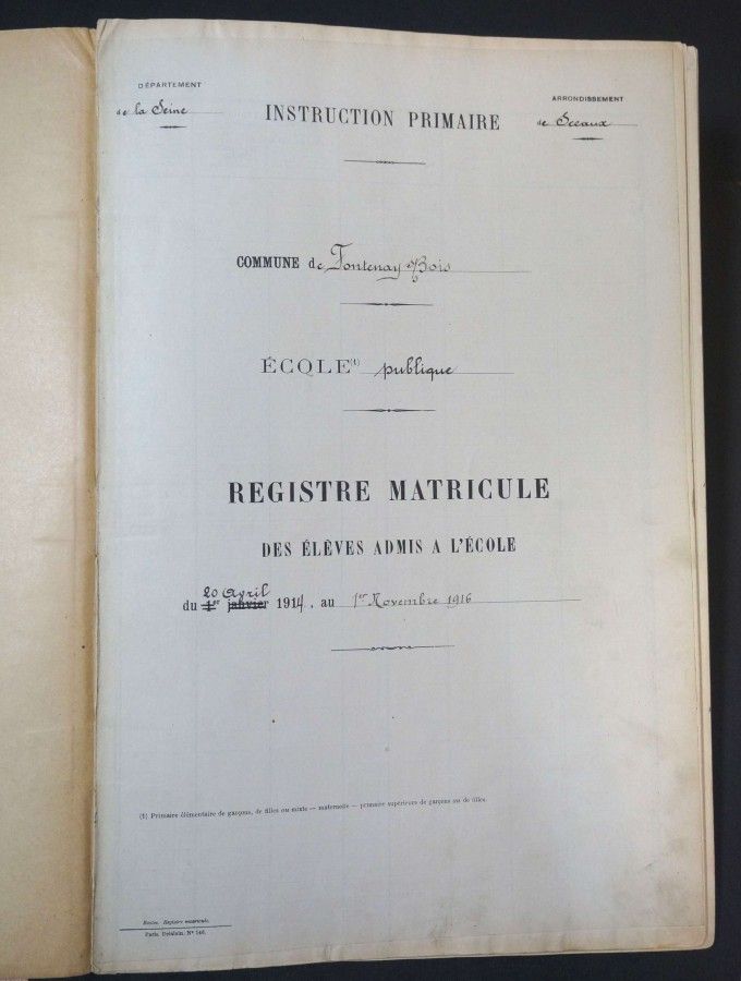 Ils inscrivent leur fils Henri à l’école Jules-Ferry de Fontenay-sous-Bois le 11 mai 1916, en cours d’année scolaire ; il a alors 11 ans.