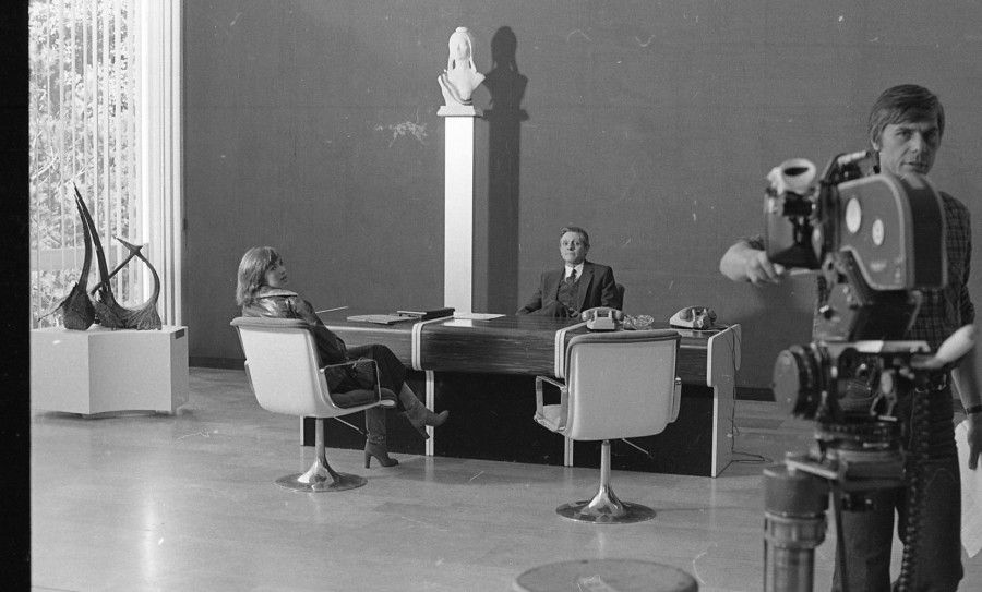 Nous sommes en 1980, dans la salle des mariages de l’Hôtel-de-Ville transformée en lieu de tournage d’un téléfilm, intitulé « Pause-café ». Le décorateur a gardé la statue de Maurice Cardon, encore exposée.