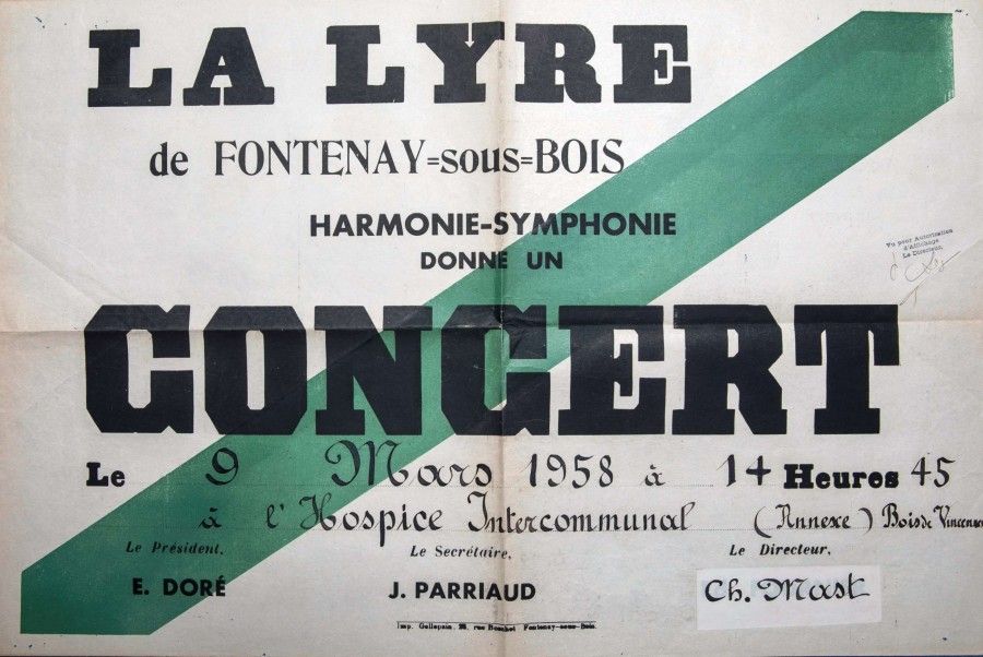 Le service des archives a voulu, ce mois-ci, participé à la célébration nationale de la musique en vous présentant une affiche d'un concert, donné 60 ans plus tôt par l'association La Lyre, à l'annexe de la maison de retraite d'Hector-Malot.