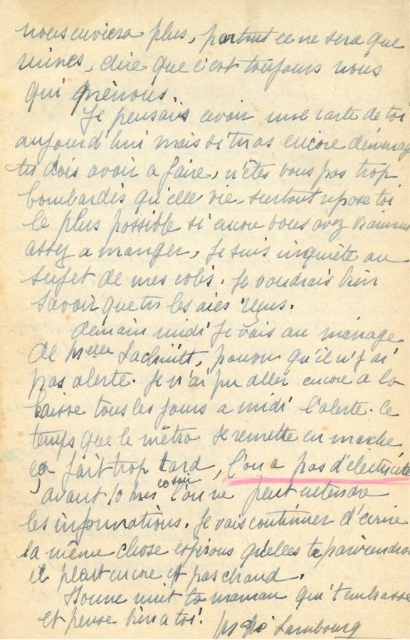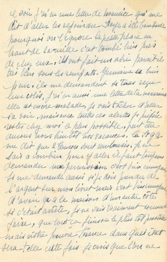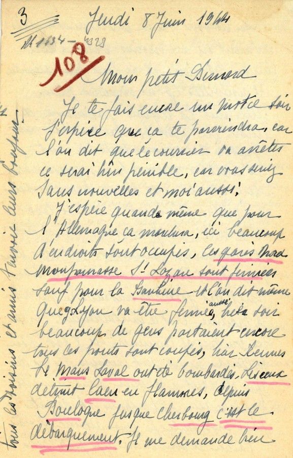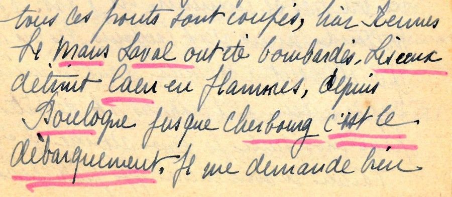 Dans sa correspondance Marie Lambourg relate à Bernard les évènements survenus dans plusieurs villes de France ainsi que le débarquement en Normandie.