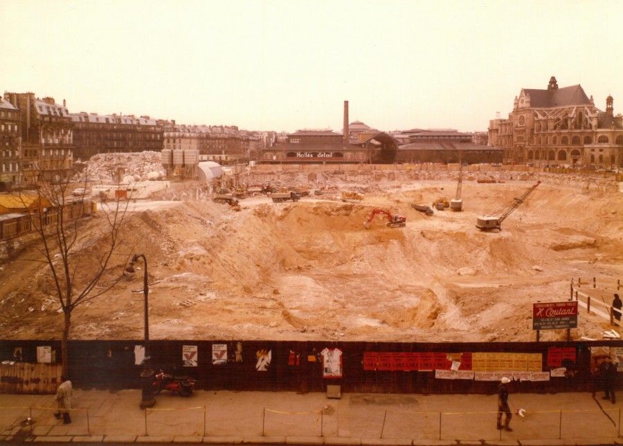 Elle illustre bien les travaux de démolition de l'époque et nous pouvons apercevoir en arrière-plan les halles encore présentes.