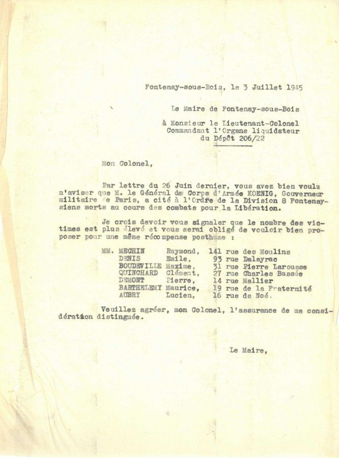 Dans ce récit, son père conclut ainsi: " il avait réalisé son idéal: contribuer à chasser les Allemands hors de France". Il reçoit la Médaille Militaire à titre posthume en 1950.