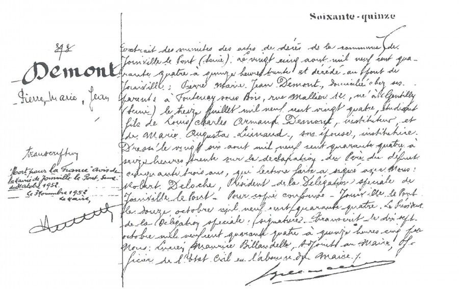 Pierre Demont est enterré au cimetière de Fontenay-sous-Bois, 10e division, 2e allée, 4e gauche.