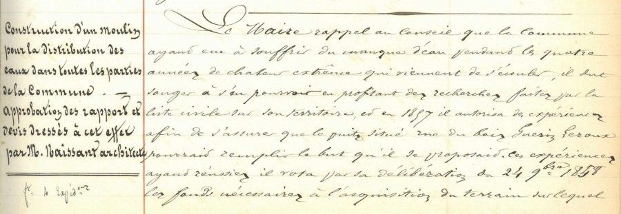 Le maire de la ville, Jacques Boschot, s'inquiète en mai 1856 de la sécheresse qui sévit depuis 2 ans et qui assèche les cours d'eau de la commune.