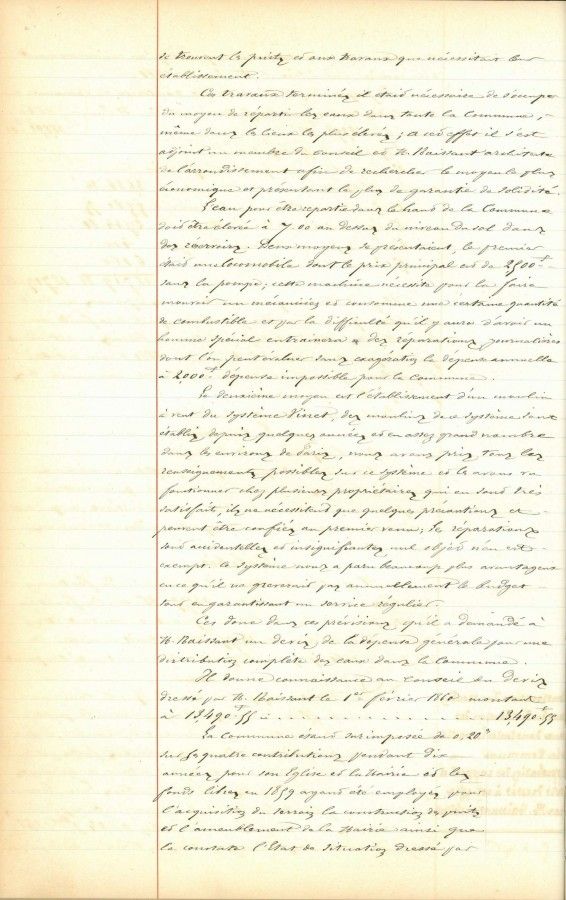 Il demande à l'architecte départemental Claude Naissant de chiffrer les travaux pour 400 mètres de tuyaux.