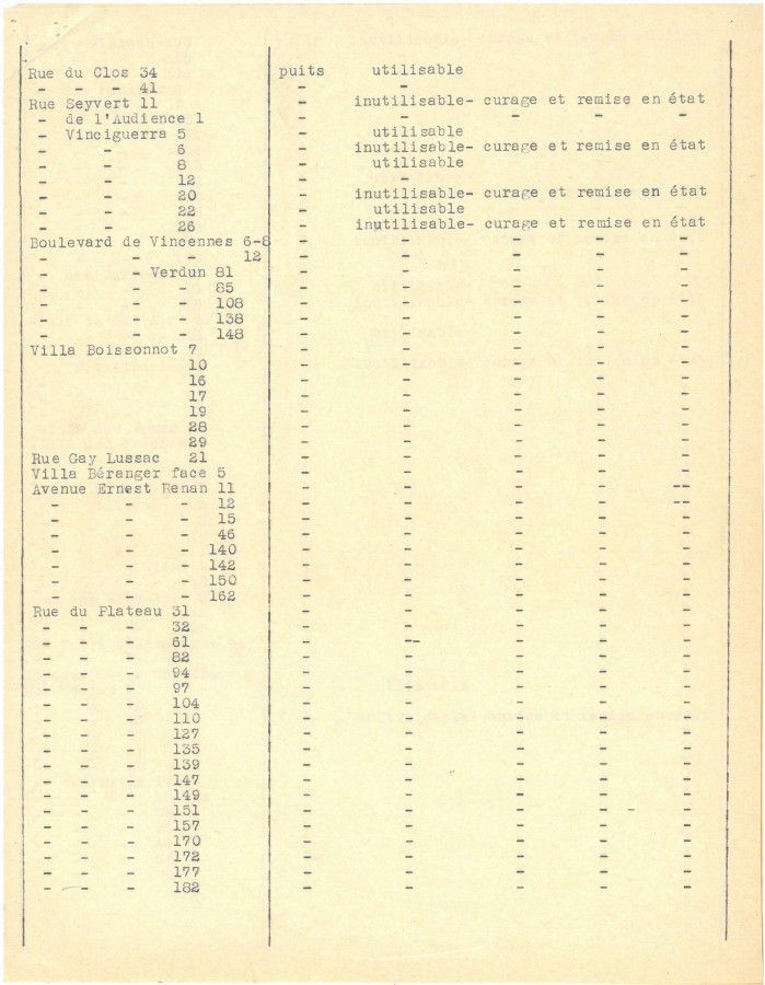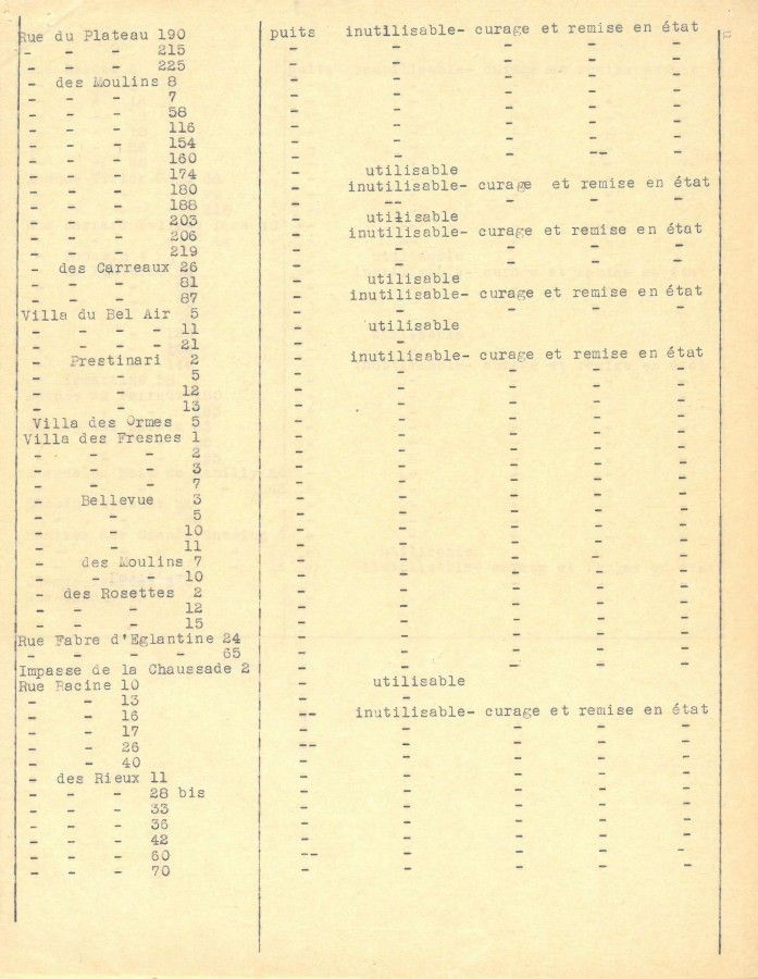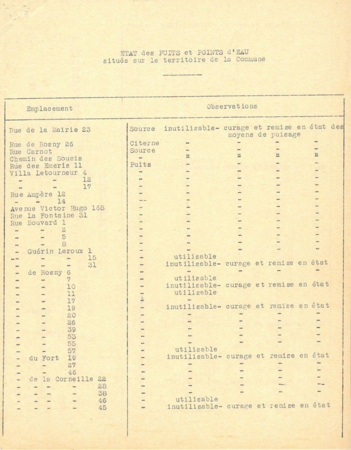 En 1939, dans le cadre de la Défense passive, la municipalité recense les puits, les sources, les citernes.