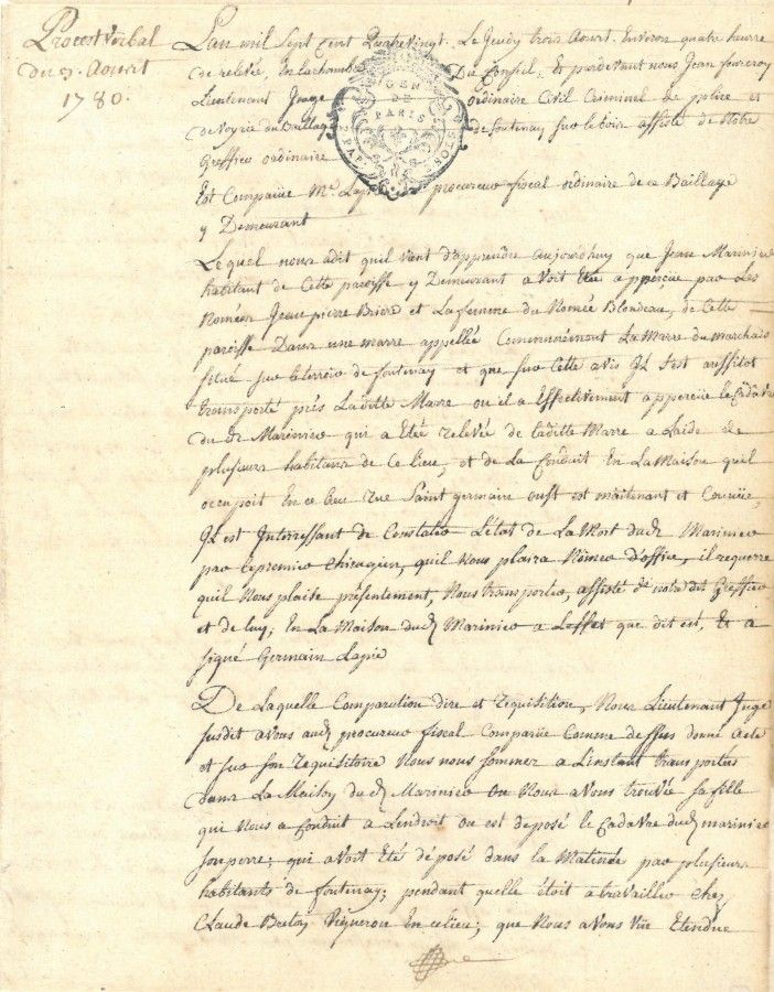 Mais elle était dangereuse. Plusieurs personnes s'y noyèrent, comme ce 3 août 1780... Dans un procès-verbal retrouvé dans un registre paroissial, les faits y sont relatés avec toute la rigueur judiciaire de l'époque (Voir document).