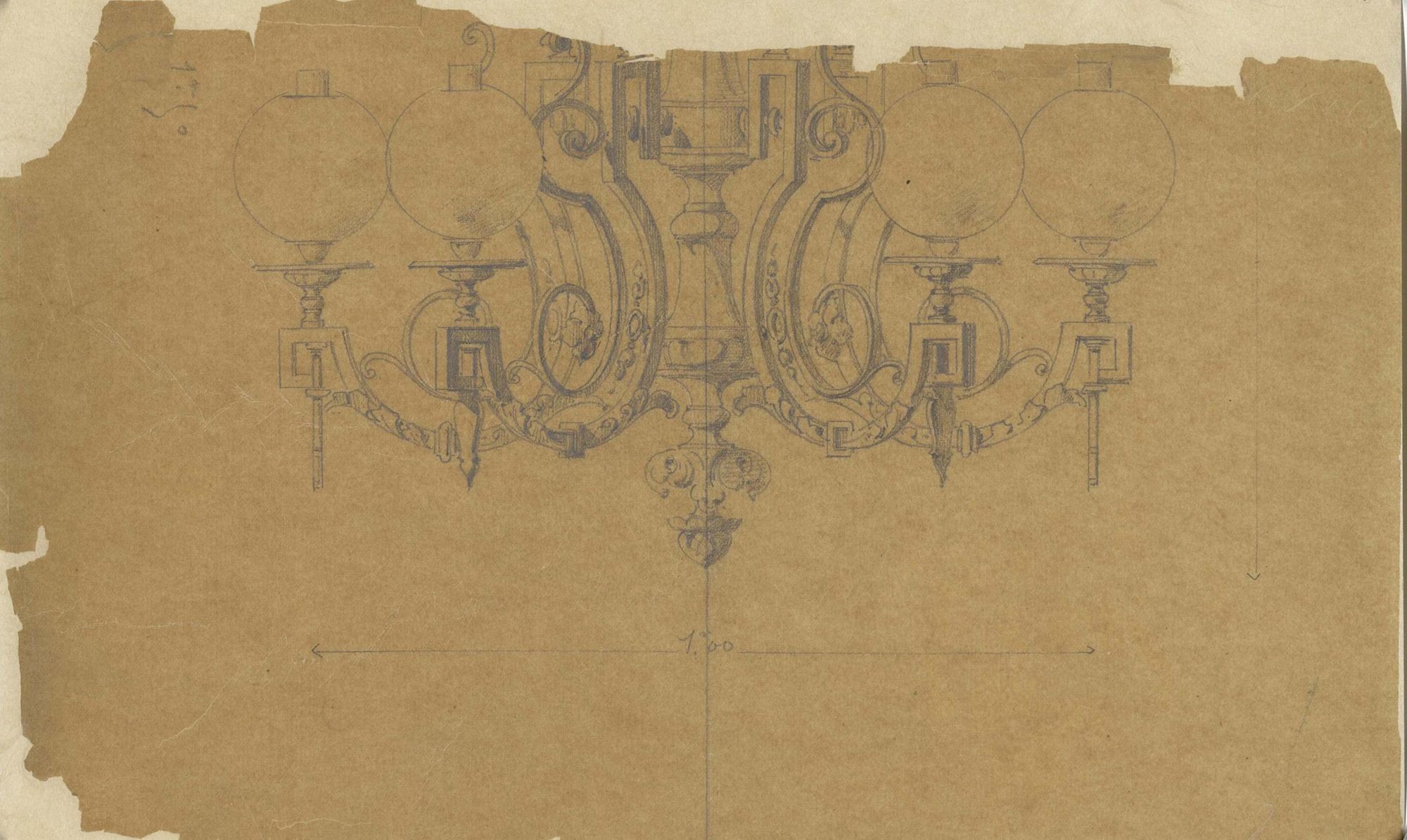 De retour de restauration, nous voulions vous faire profiter de ces croquis, aux traits fins, représentant des lanternes et des lustres.