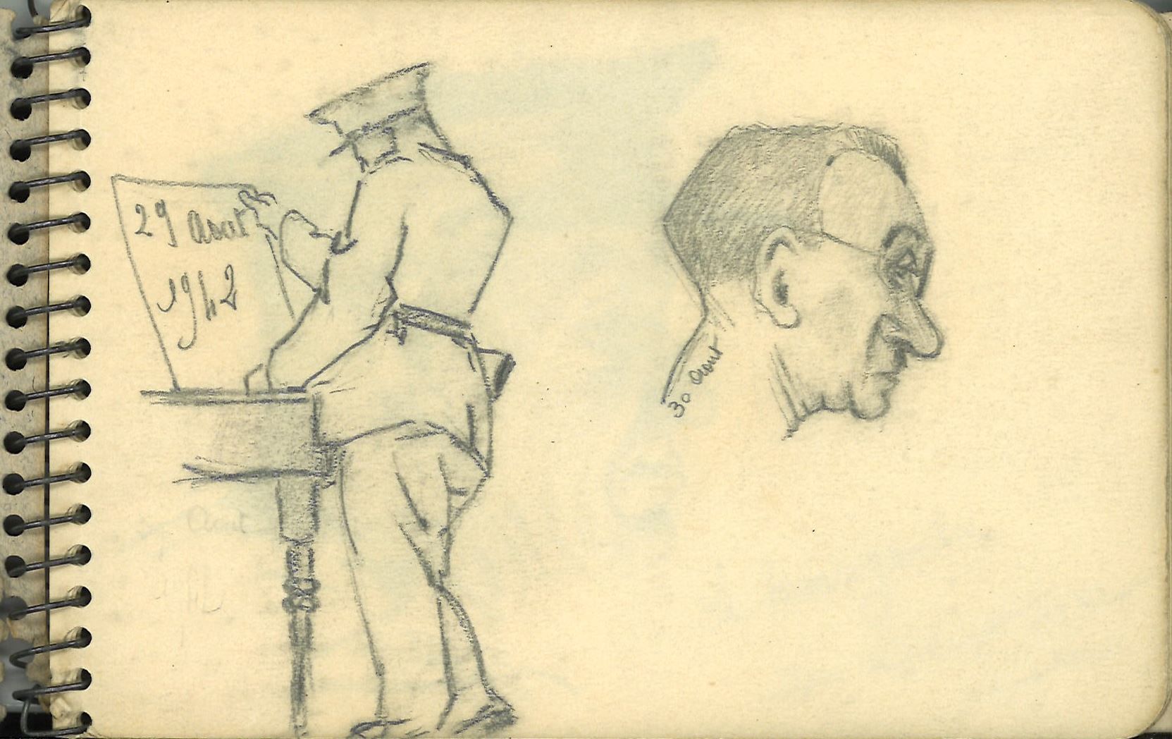 16 décembre Croquis du 20 août 1942 réalisé par Marceau Kada. extrait du carnet n°3 de juillet à décembre 1942. Fonds Kada Découvrir le carnet n°3
