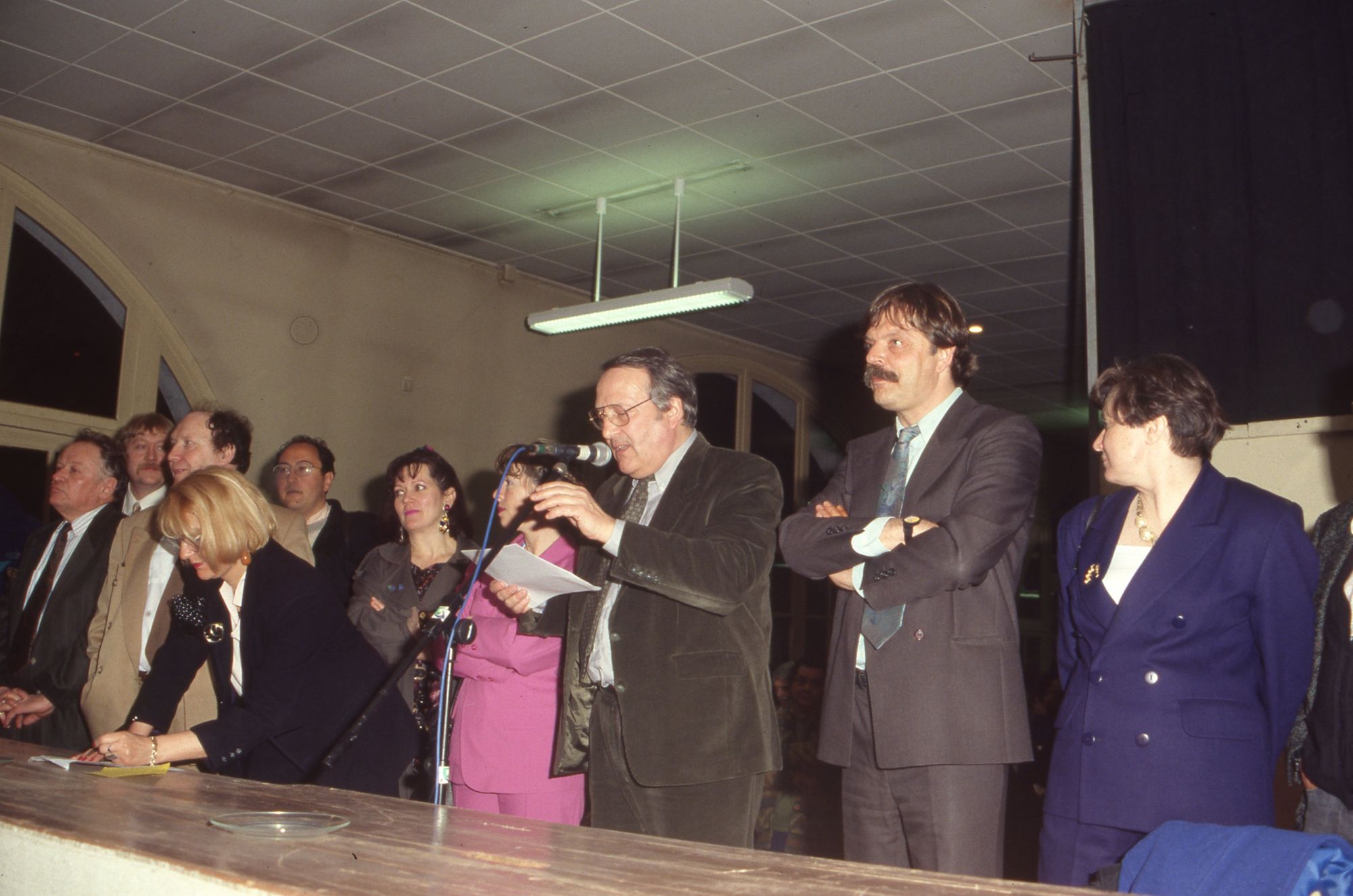 Proclamation des résultats des élections régionales et cantonales dans le hall de l'école Michelet