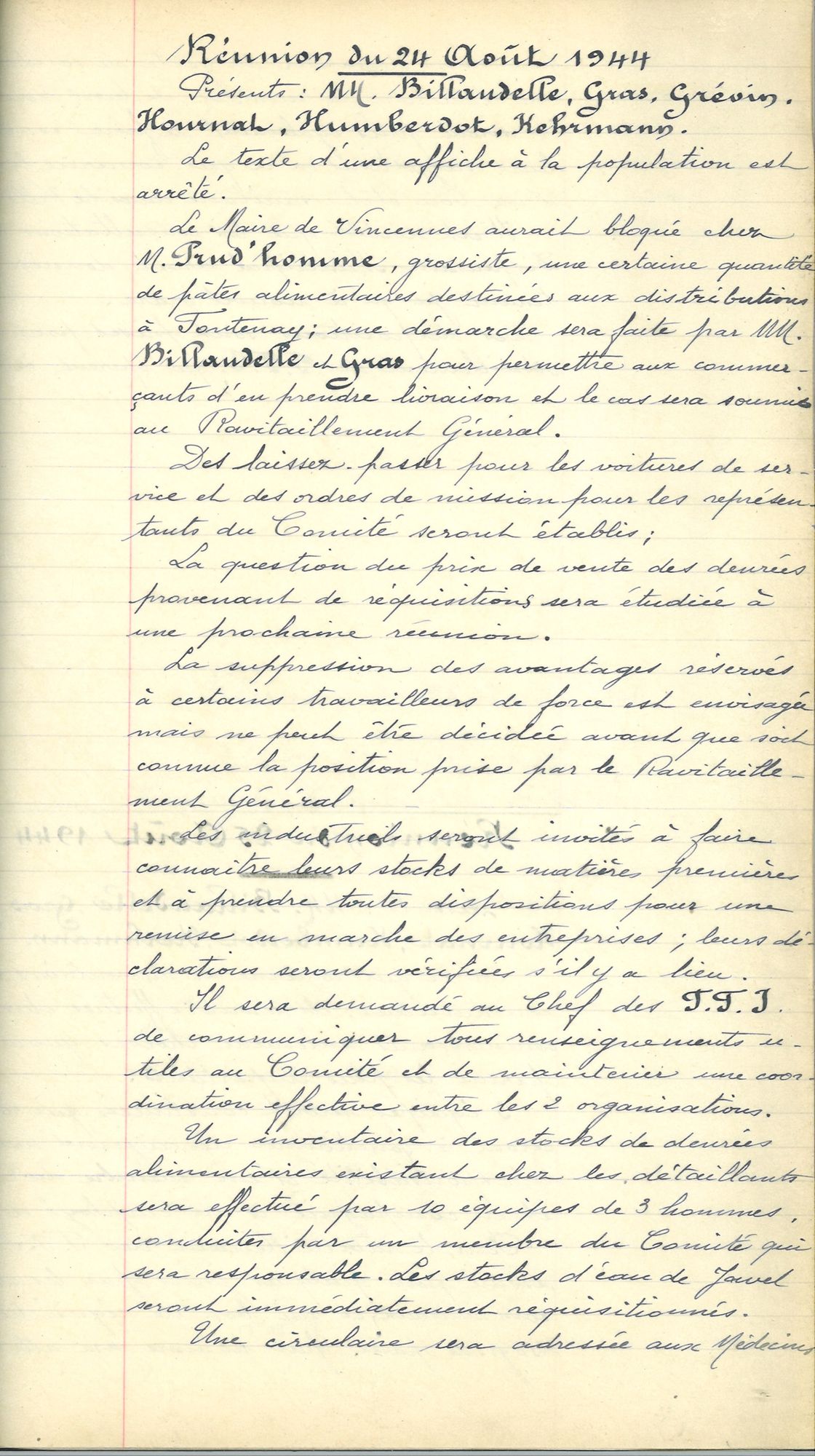 A partir d’août 1944, le Comité de Libération nationale dirige la commune et un secrétariat général au ravitaillement est mis en place. Ce dernier gère tous les projets de ravitaillement et réquisition de nourriture et de matériel.