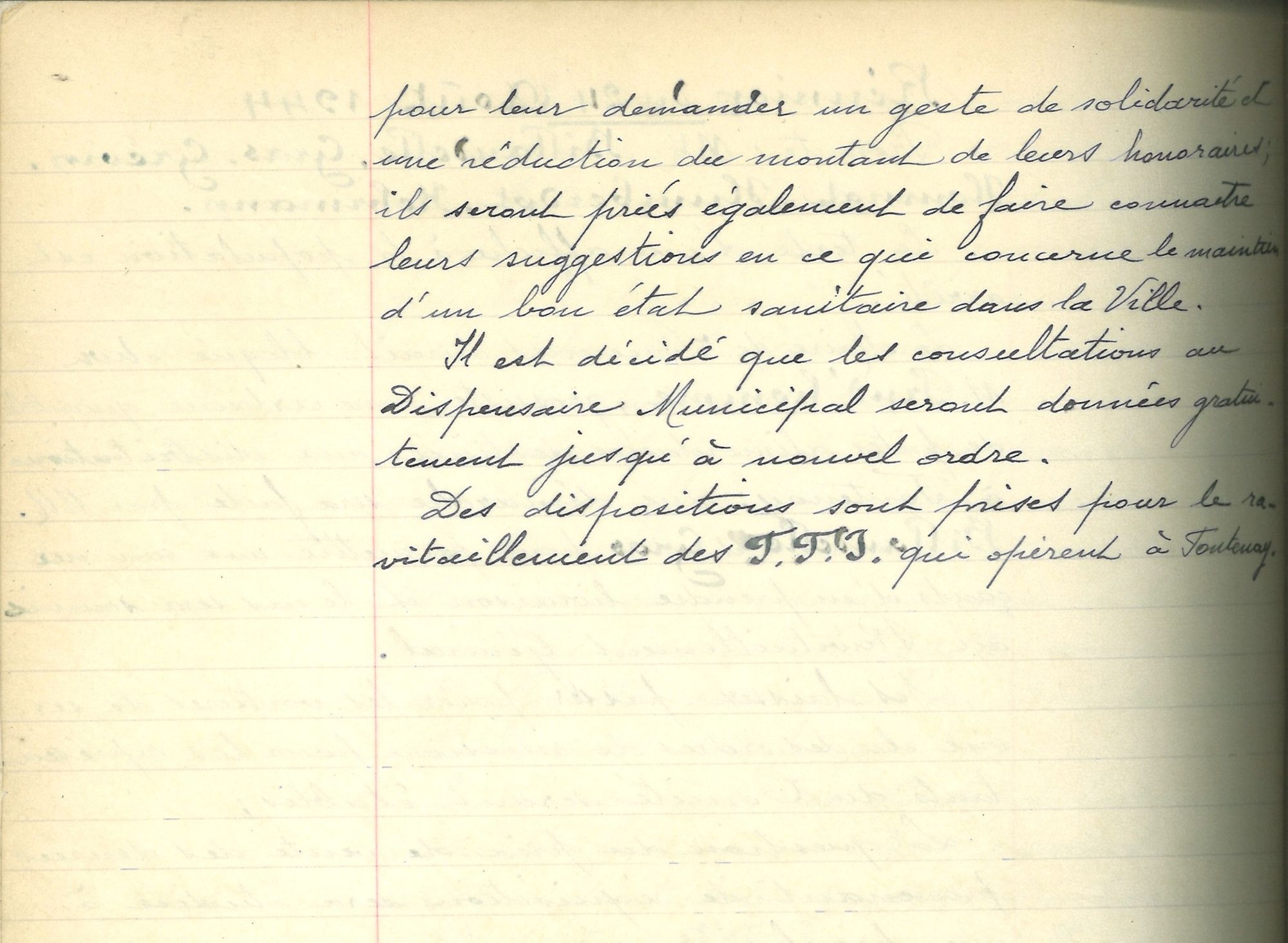 La commune tente aussi d’agir sur la santé de ses habitants. En effet, une circulaire pour les médecins est faite afin de leur demander un geste de solidarité et une réduction du montant de leurs honoraires. Ils sont aussi incités à faire des suggestions pour le maintien d’un bon état sanitaire dans la Ville.