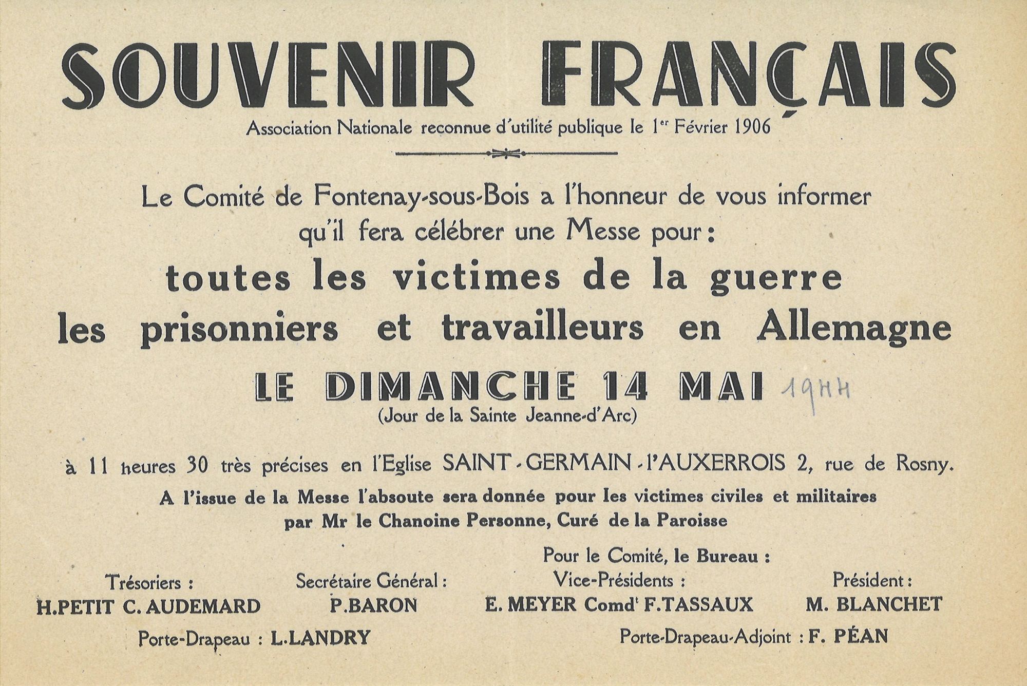 En janvier 1944, il existe un comité d’assistance aux prisonniers de guerre qui aide à l’envoi gratuit de colis. Ce comité est dirigé par M. LHERMITE avec des bénévoles et un personnel restreint.