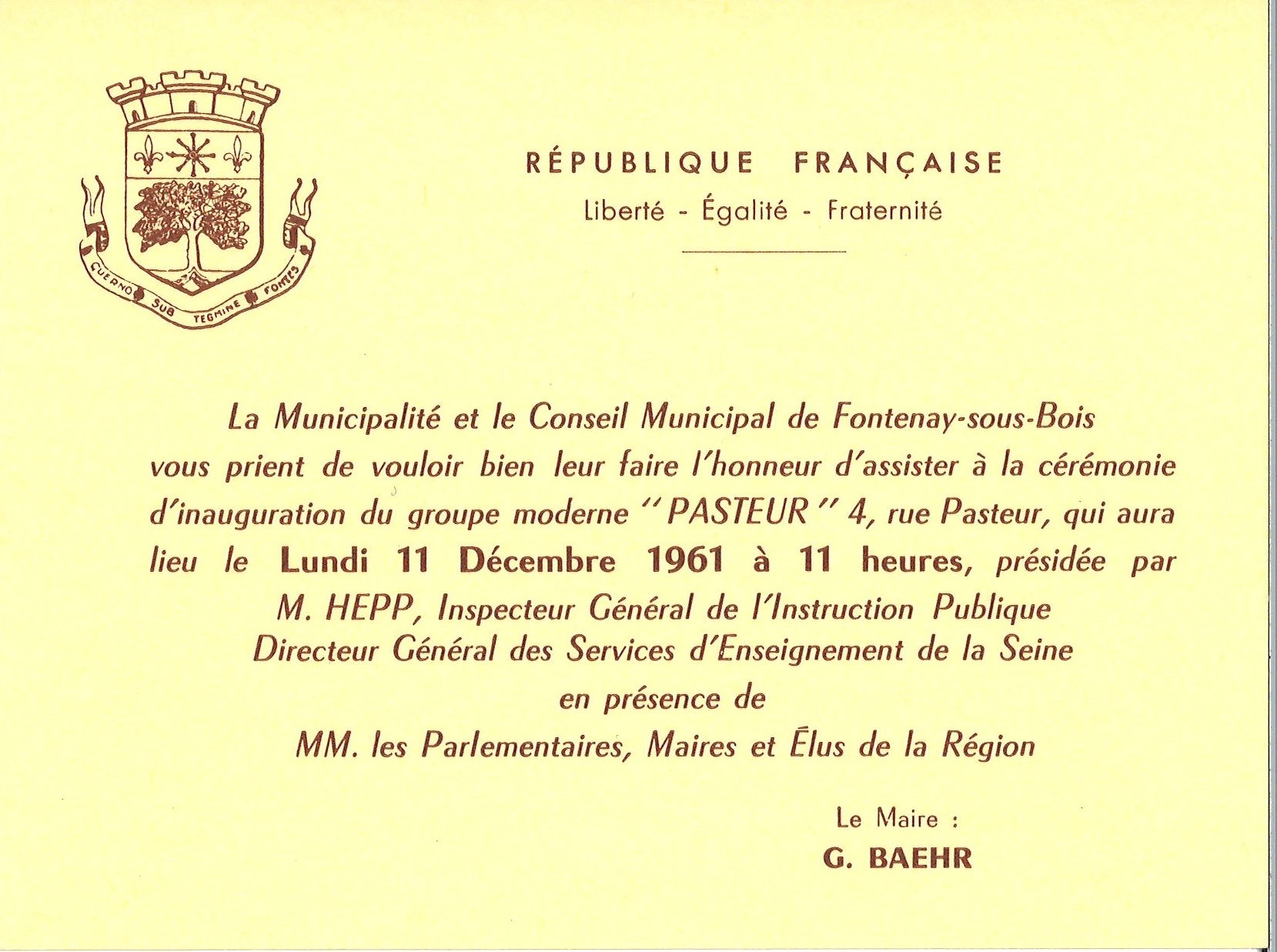 Le Maire, Georges Baehr, fait remarquer au Ministère de l' Education Nationale que Fontenay a la particularité, par rapport aux autres communes situées aux portes de Paris, de possèder encore de nombreux terrains à bâtir.