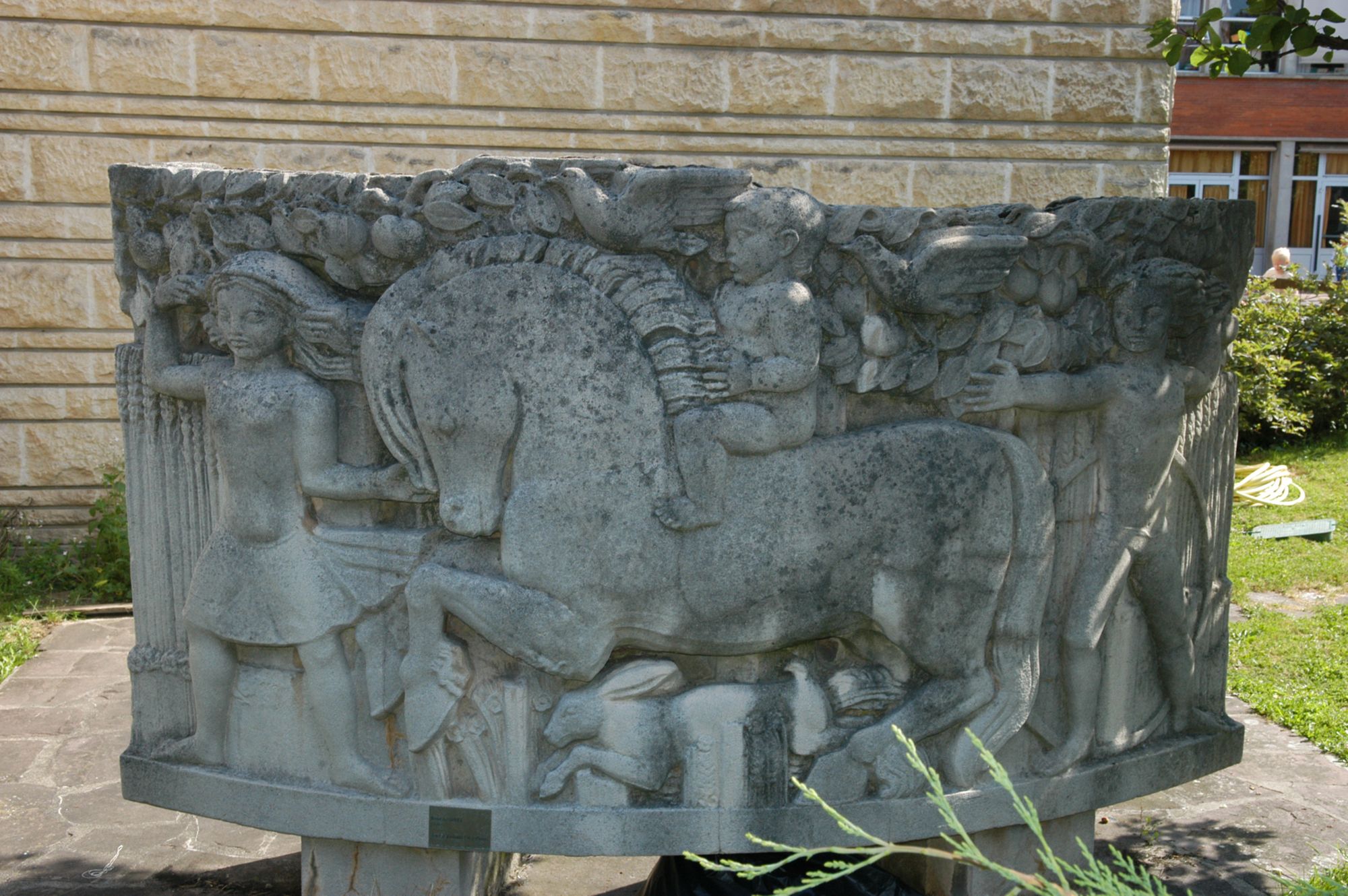 L'oeuvre, un haut-relief en pierre, est intitulée Jeux d'enfants.