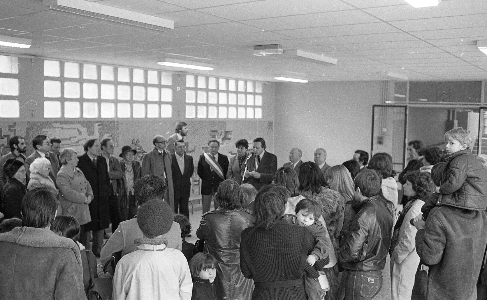A cette occasion le maire, Georges Baehr, félicite les artistes qui ont décoré le groupe scolaire, au titre du 1% décoration.