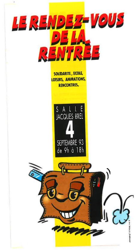 Ainsi le 4 septembre 1993 à la salle Jacques Brel a eu lieu le premier « Rendez-vous de la rentrée », un évènement où la solidarité, l’école et les loisirs sont à l’honneur.