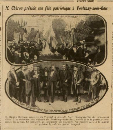 Article sur la fête patriotique à Fontenay-sous-Bois lors de l'inauguration du monument commémoratif des soldats morts pendant la guerre de 1870-1871.