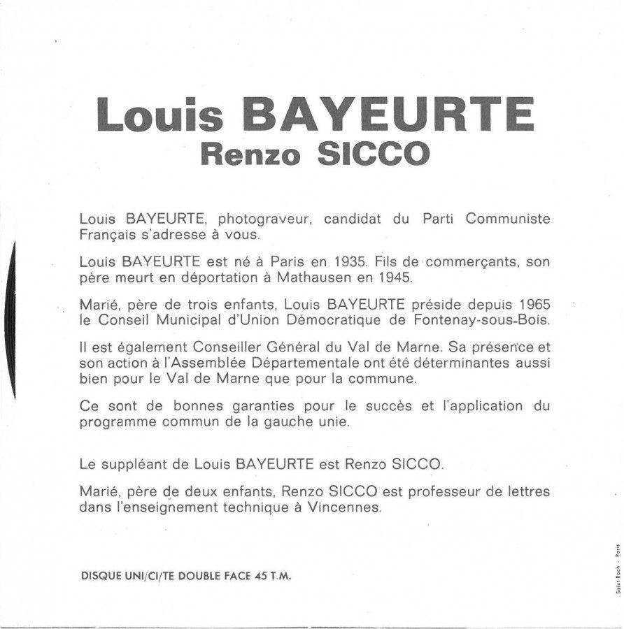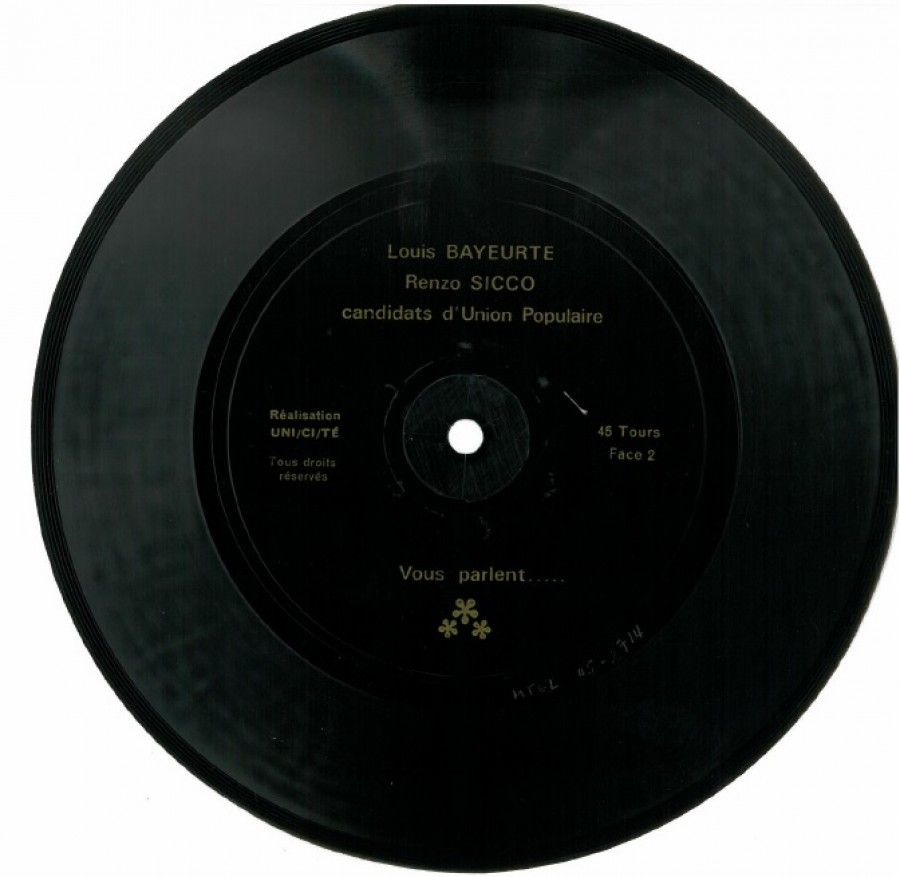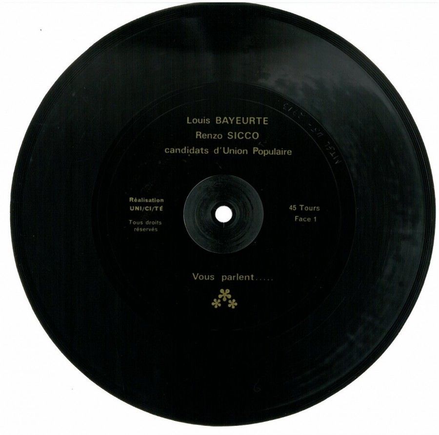 Afin de diffuser le plus largement son message politique, il décide d'utiliser un support orginal de communication: le 45 tours.