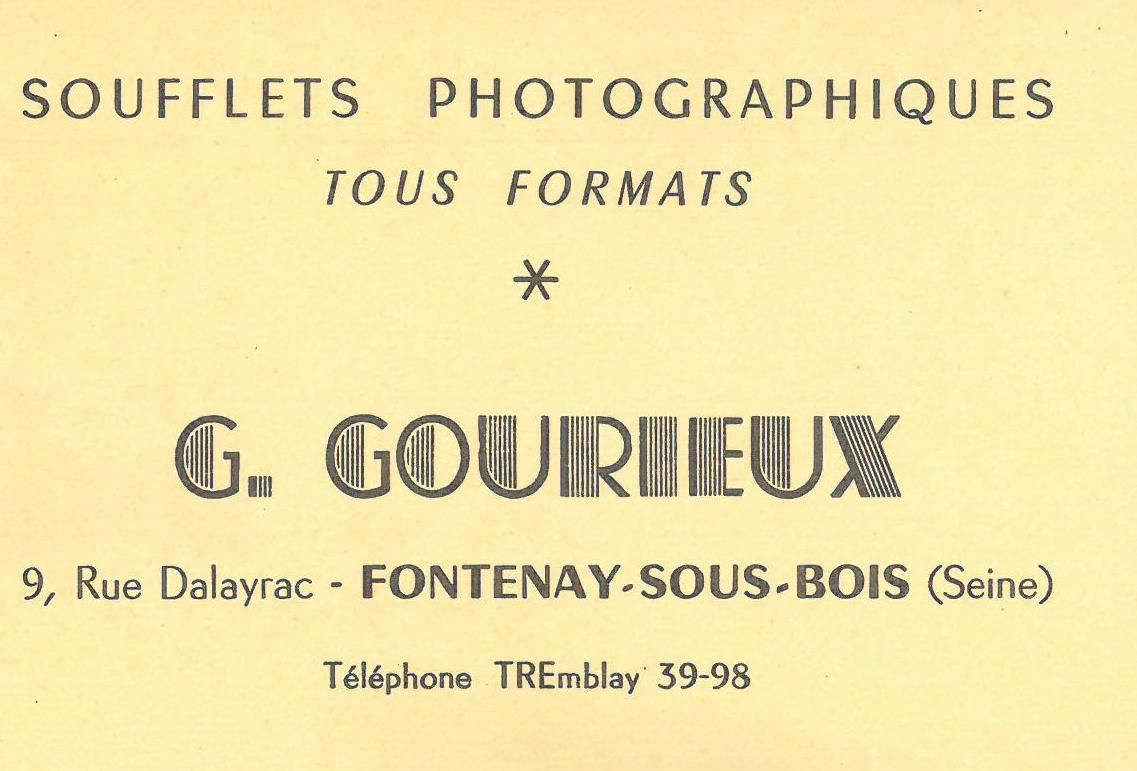 Ne trouvant pas de fabricants de soufflets s'adaptant à son "Kaliscope", Gaston Gourieux décide de les créer lui-même. Il fournit également en soufflets, les réparateurs français et européens, pour différentes marques d’appareils photos : Kodak, Coronet …
