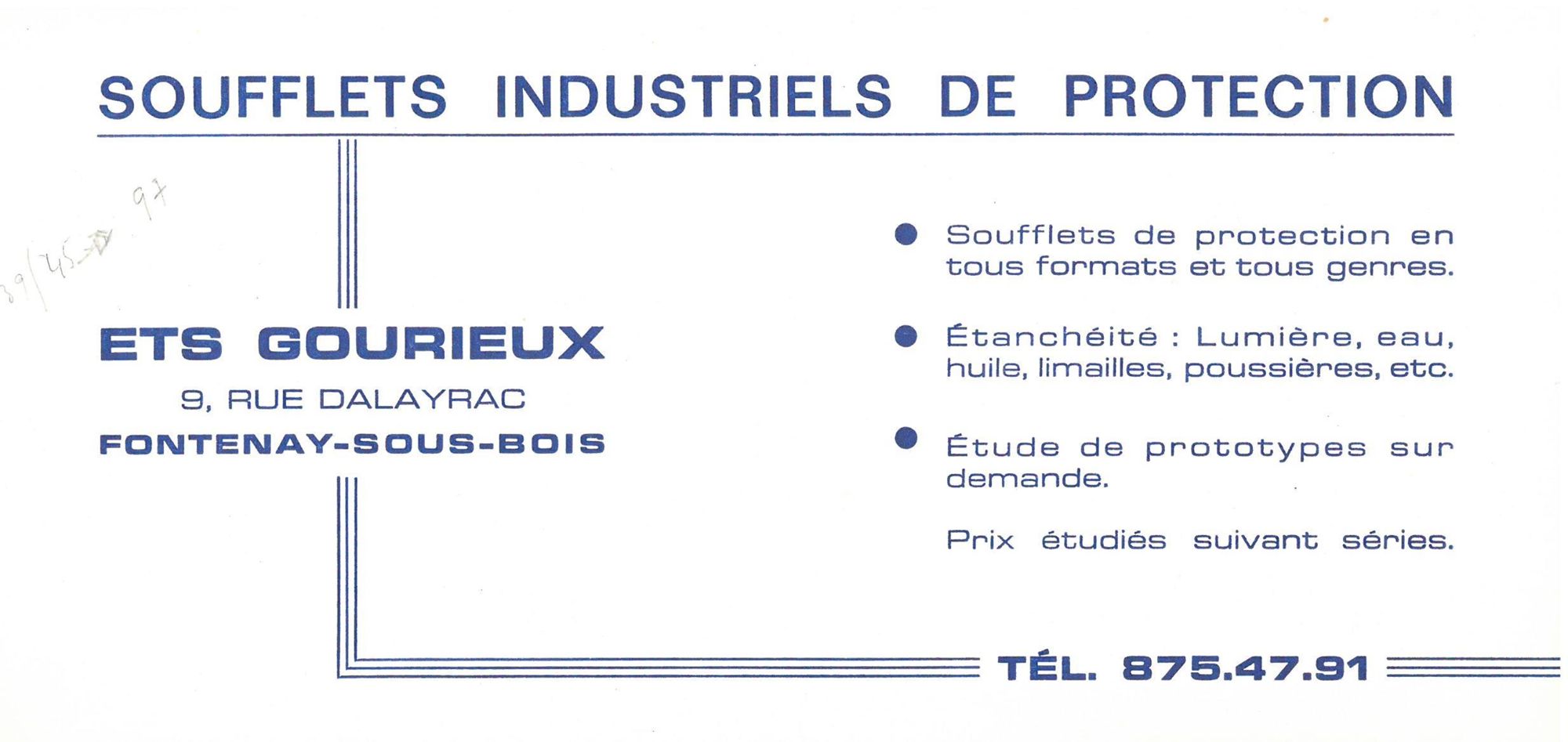 Ce soufflet est une fabrication des établissements G. Gourieux, situés au 9 rue Dalayrac.