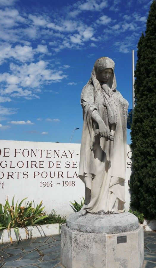 Il est fait appel au sculpteur Paul Roussel (1867-1928), prix de Rome en 1895 pour réaliser la statue. Il s’agit d’une femme en deuil, voilée de crêpe et en pleurs qui dépose de la main droite une fleur en souvenir des enfants de Fontenay-sous-Bois morts pour la France.