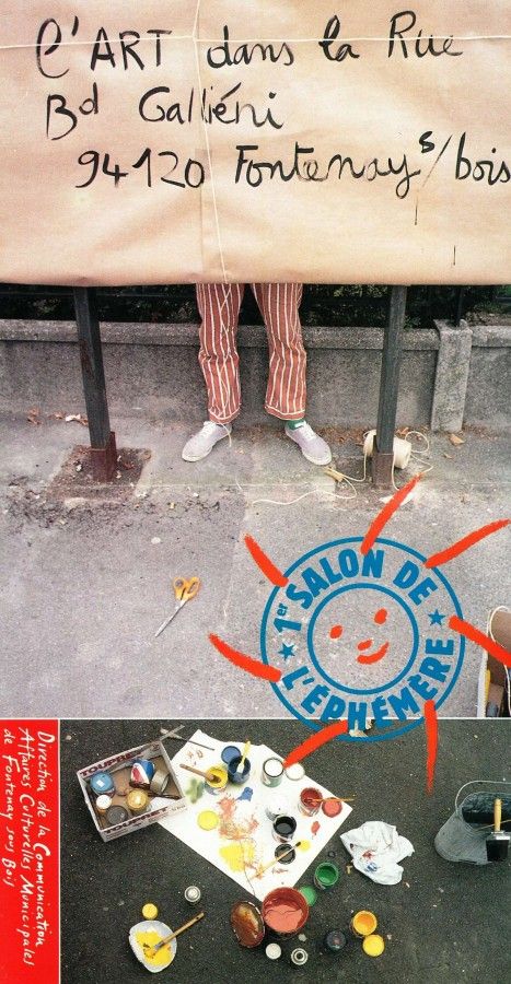 1er Salon de l'Ephémère Salon de l'Ephémère 1er Salon de l'Ephémère Celui-ci s'est tenu du 15 août au 1er septembre 1988. 1er Salon de l' Ephémère, 1988 1er Salon de l' Ephémère, 1988 Artistes : Catharina Hausammann - Arcus -Patrick Deby - Renata Zolcinska -Cannelle Belleville -Julien et Vincent Odic -Evelyne Chat 1er Salon de l' Ephémère, 1988 Artistes : Guy Mocquet -Ange Luqué - Philippe Chat - Jean-Pierre Djivanidès - François Robert -Laurent Coutaudier - Nicolas Bique 1er Salon de l' Ephémère, 1988 Artistes : Yutaka Ohba - Nicolas Bique - Guy Mocquet 1er Salon de l' Ephémère, 1988 1 / 5