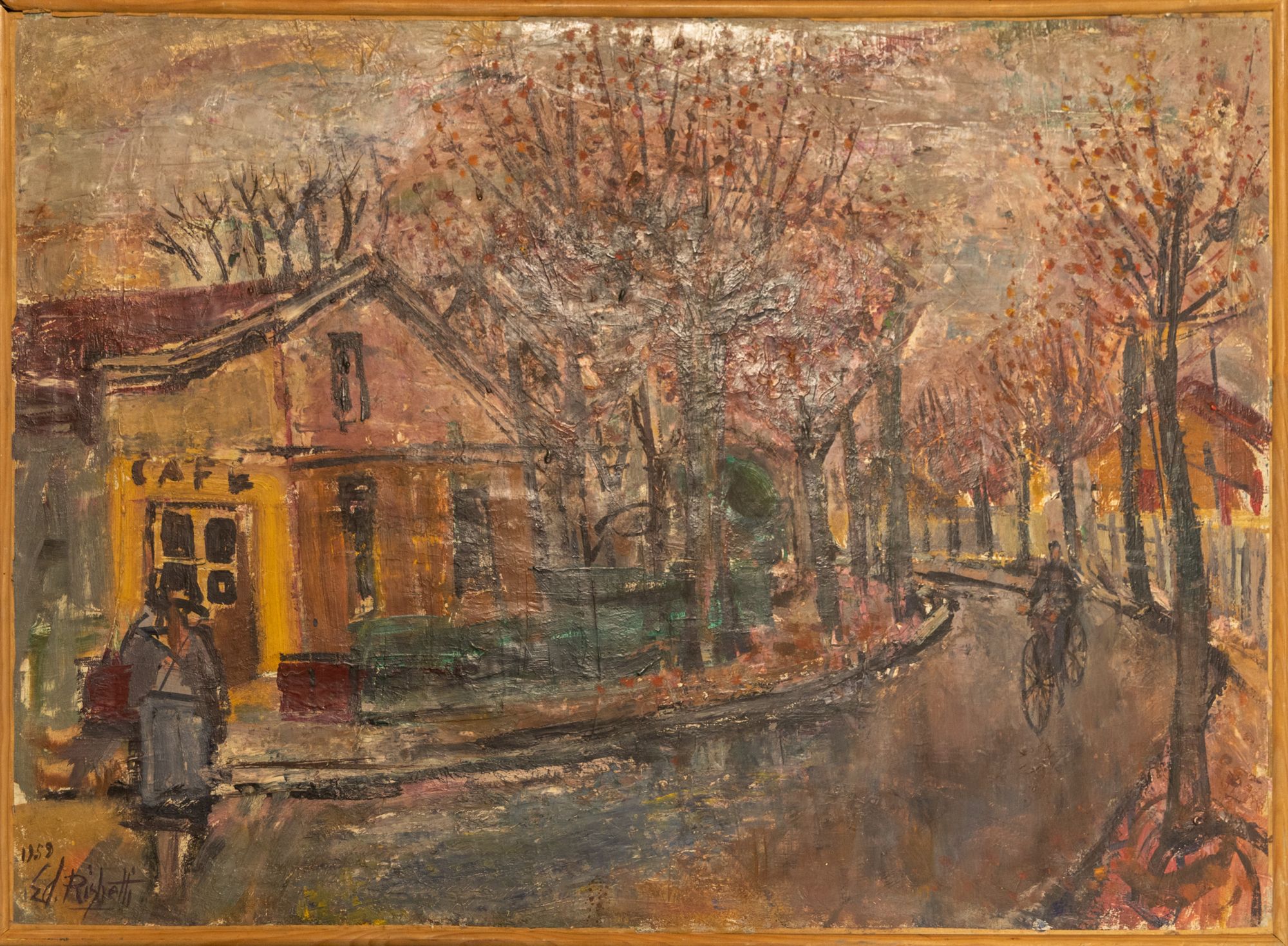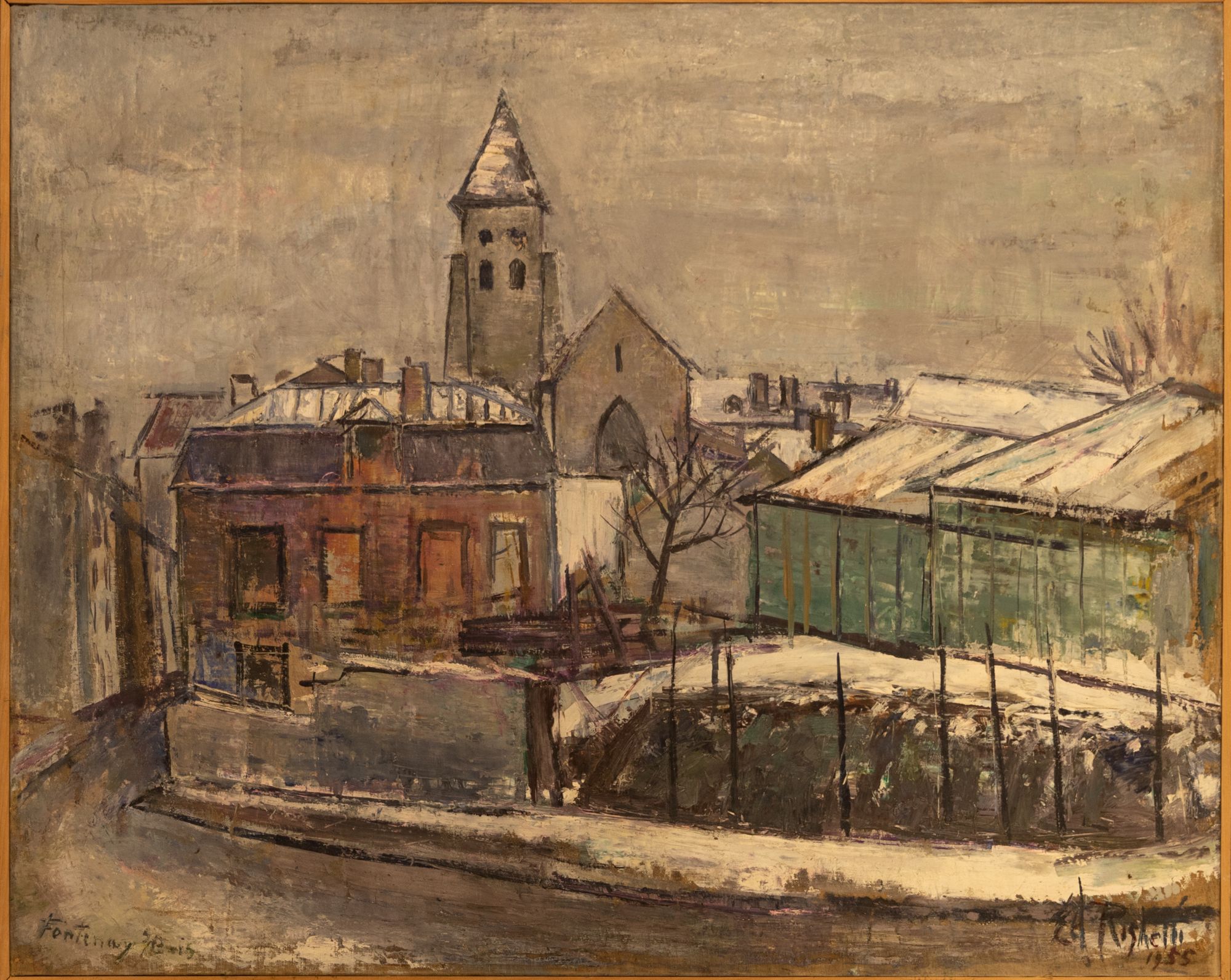 Edouard Righetti nous offre ici une vision mélancolique de la banlieue sans jamais être triste. Sa palette y est pour beaucoup, il ajoute en effet à chaque couleur, une légère touche de noir pour l'assombrir un peu ce qui donne à ses sujets cette expressivité si particulière. On peut sans nul doute y voir l'influence de son maître Edouard Goerg lui-même élève de Maurice Denis et de Paul Sérusier.