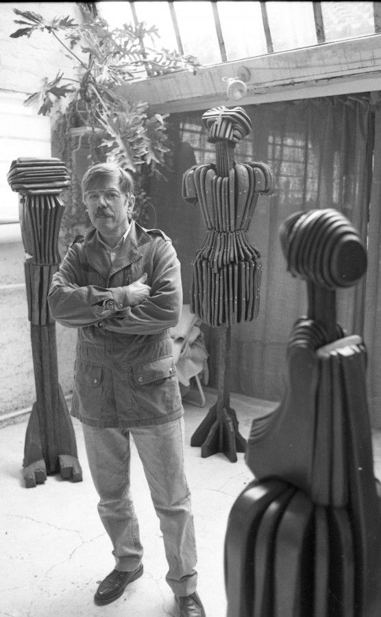 "Ma matière de prédilection c' est le bois. Je n' attaque pas dans la masse mais je sculpte et j' assemble autour d'une ossature invisible et d'un cœur qui semble hypothétique chacun des éléments qui constitueront l' œuvre finale."