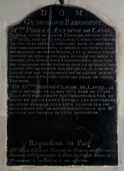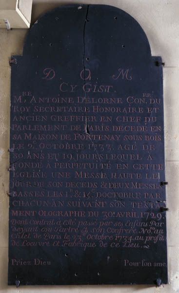 Sa femme, Gilberte Pétronille Sallard, décédée le 30 juin 1819, est enterrée avec lui.