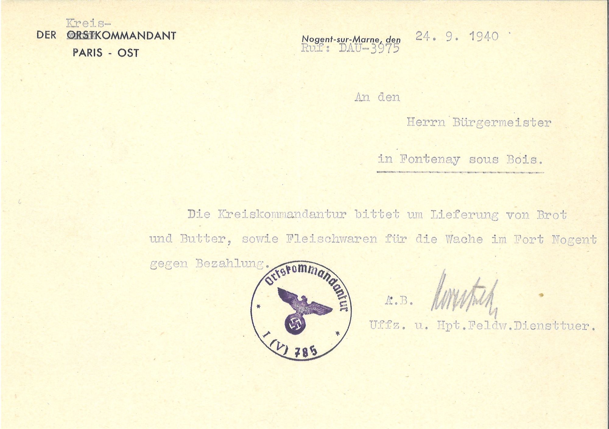 A partir de 1940, le Fort de Nogent est en partie occupé par la police militaire allemande (feldgendarmerie).