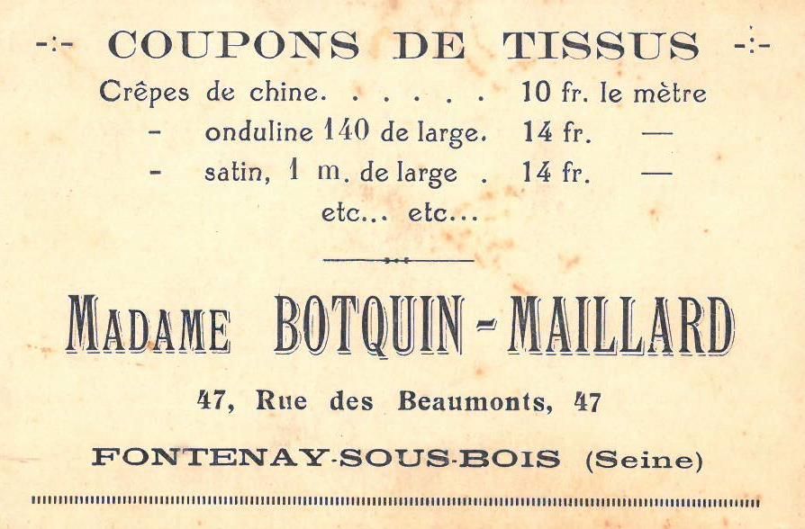 Mais elle figure encore dans les pages indicateurs des rues de Fontenay et dans l' annuaire des commerçants et industriels de Fontenay-sous-Bois de 1914.