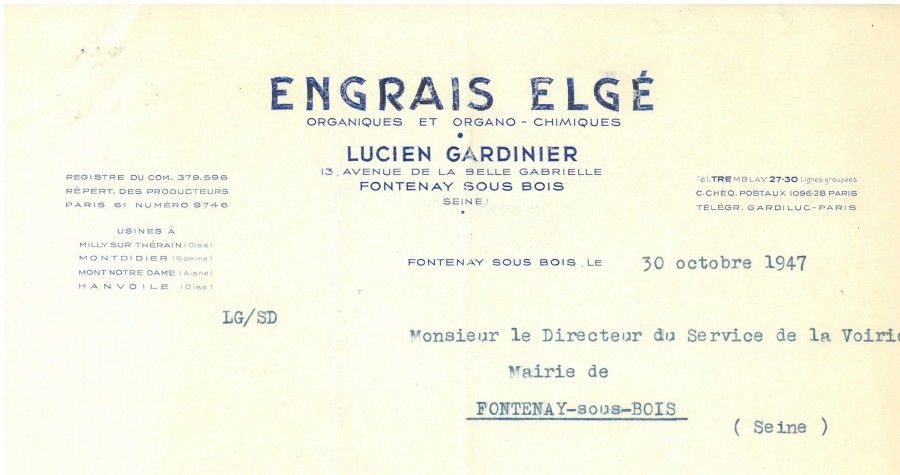 Au n° 13, celle des engrais ELGE y est implantée comme en atteste une entête de 1947.