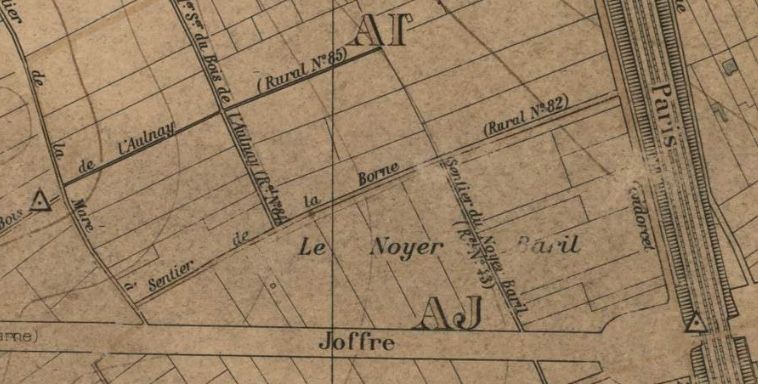 Il sépare les sections AI et AJ du plan cadastral de 1947.