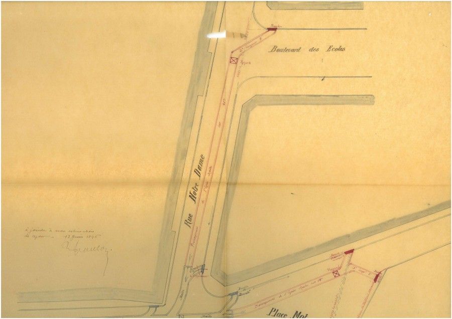 Un de ces plans d’alignement nous apprend qu’en 1886 y habitaient 3 propriétaires, Mrs Mouscadet, Vitry et Pitou.