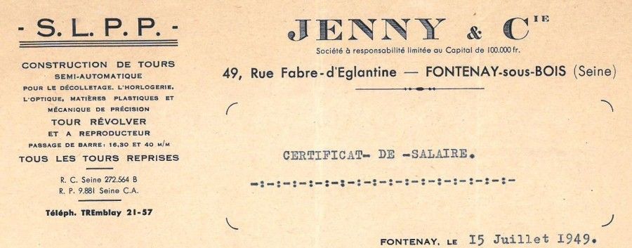 Entête de la société Jenny & Cie,construction de tours revolver