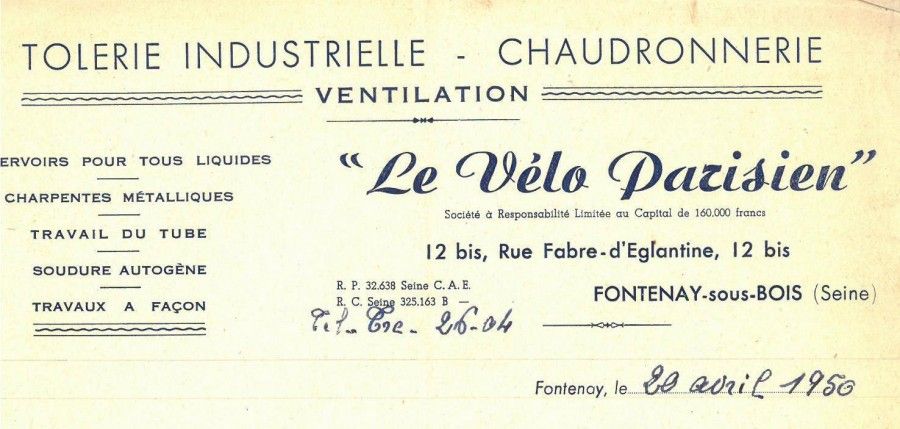 Société "Le Vélo Parisien",tolerie industrielle-chaudronnerie-ventilation