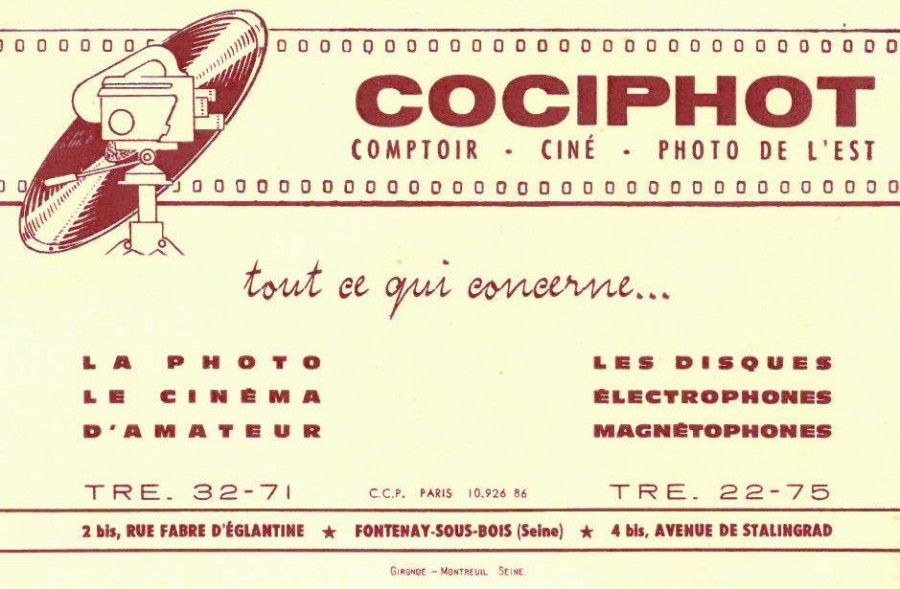 Carte de visite du commerce Cociphot, comptoir-ciné-photo,