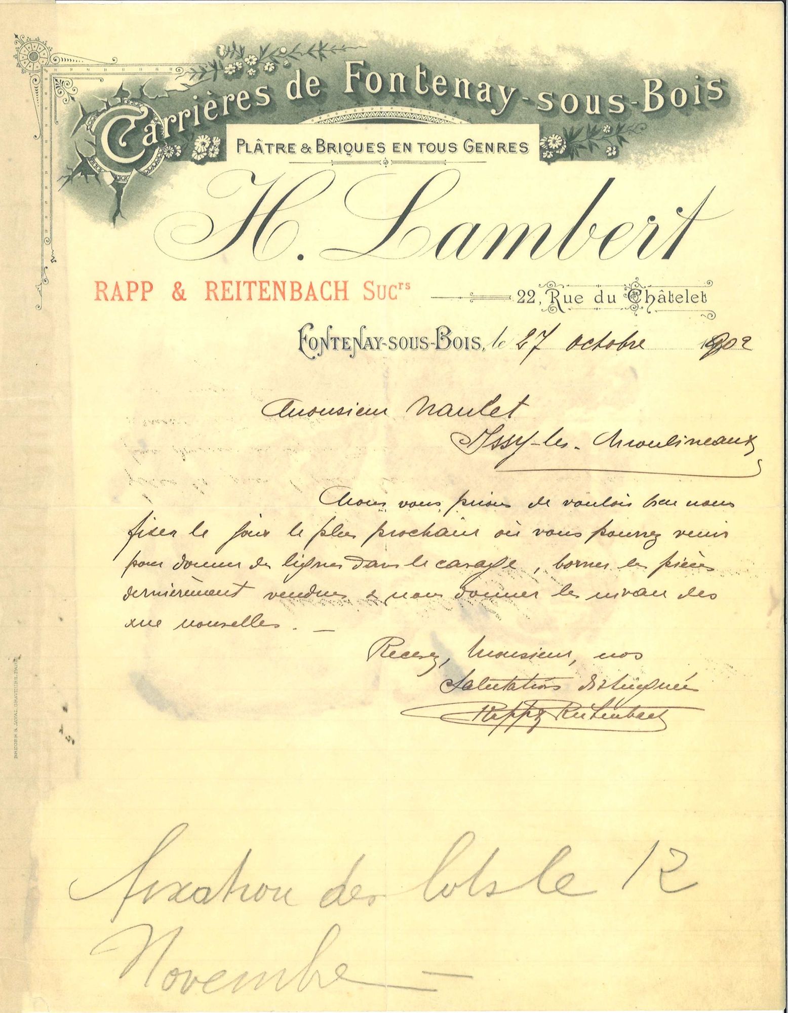 En 1893, Ernest Granjean tenait une épicerie rue des Moulins.