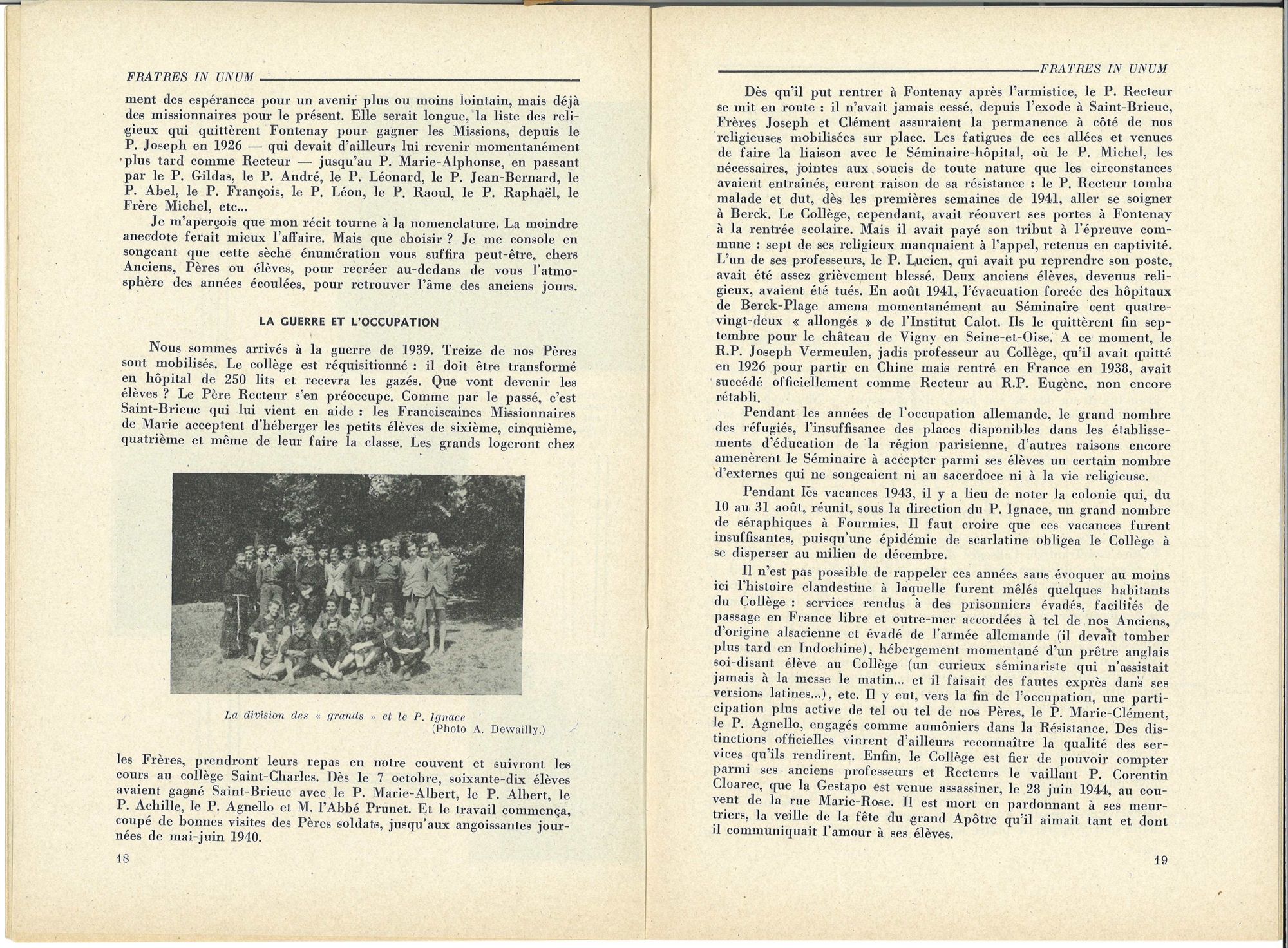 Cette Résistance franciscaine est résumée dans le Bulletin du Petit Séminaire Franciscain de Fontenay-sous-Bois d'août 1945, Fratres In Unum et dans celui de novembre 1948 pour les 25 ans de présence Franciscaine à Fontenay.