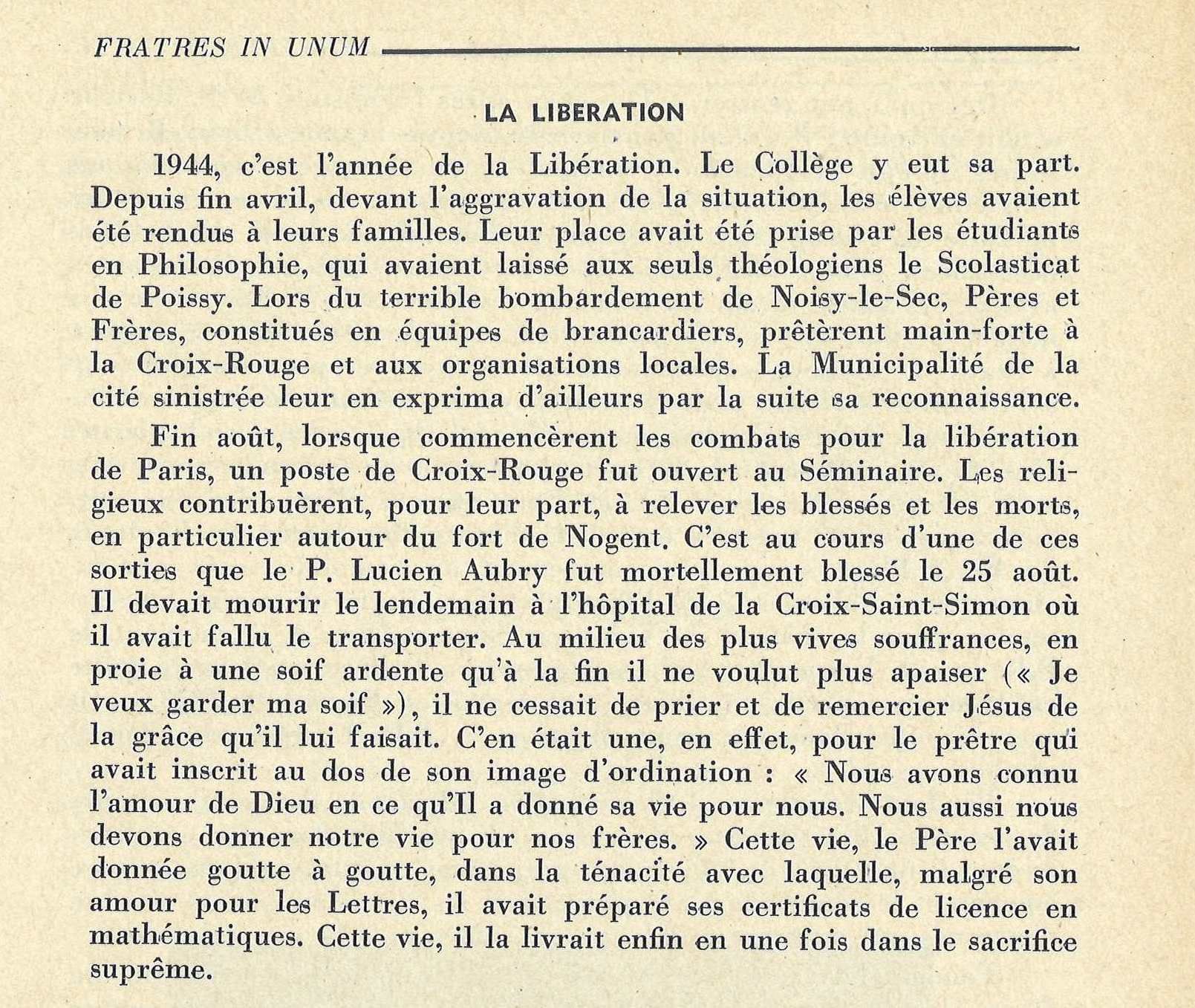 Le révérend Père Aubry joue un rôle important lors de la Libération de Fontenay.