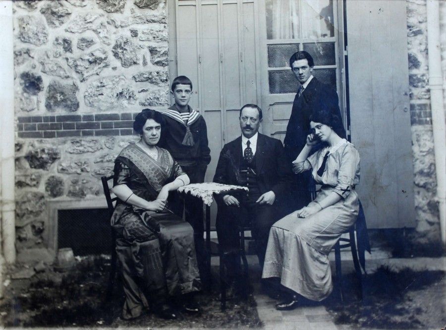 De gauche à droite, assis, Mme Jeanne Lavergne-Baehr, son mari Jules Baehr, sa fille Renée; debout, ses deux fils: Jean en costume marin et Georges Baehr