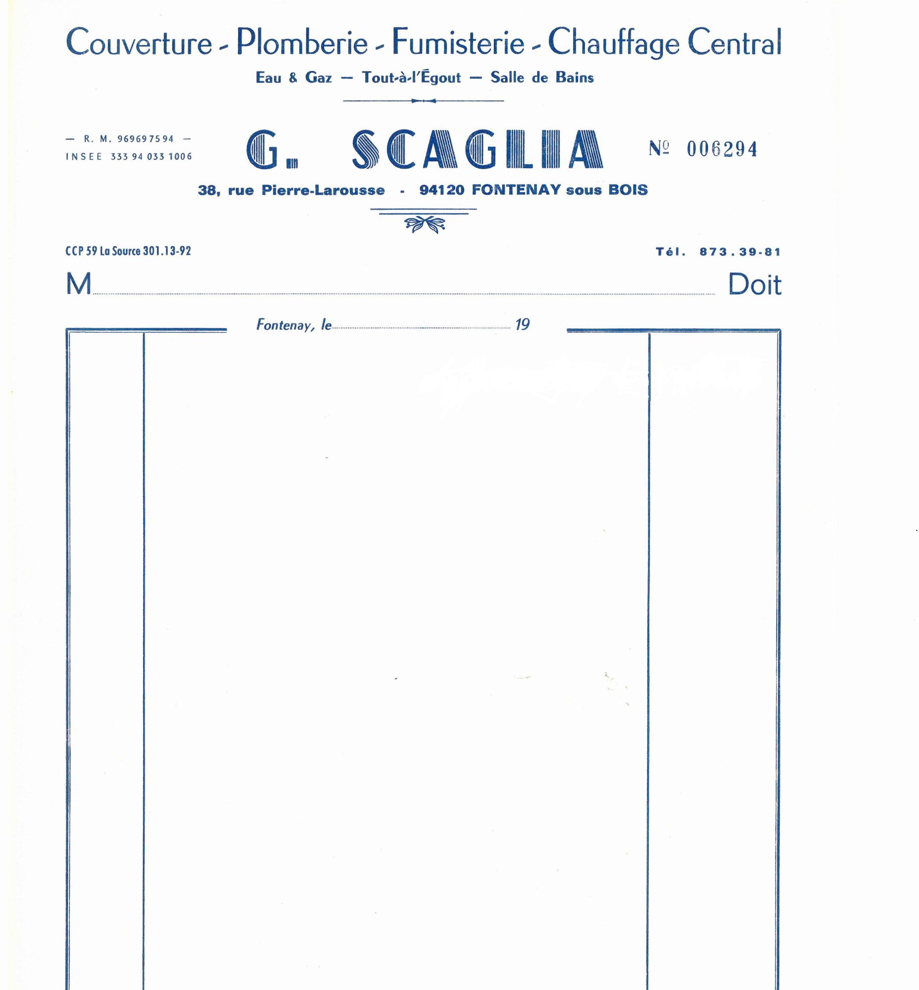 Ce fonds Scaglia traite de l’activité professionnelle de son père, couvreur-plombier, immigré italien, Ercole Scaglia, arrivé en France en 1924 et installé à Fontenay-sous-Bois en 1931 . On peut également trouver quelques documents sur sa vie privée, scolaire. Les documents couvrent la période de 1925 à 2017.