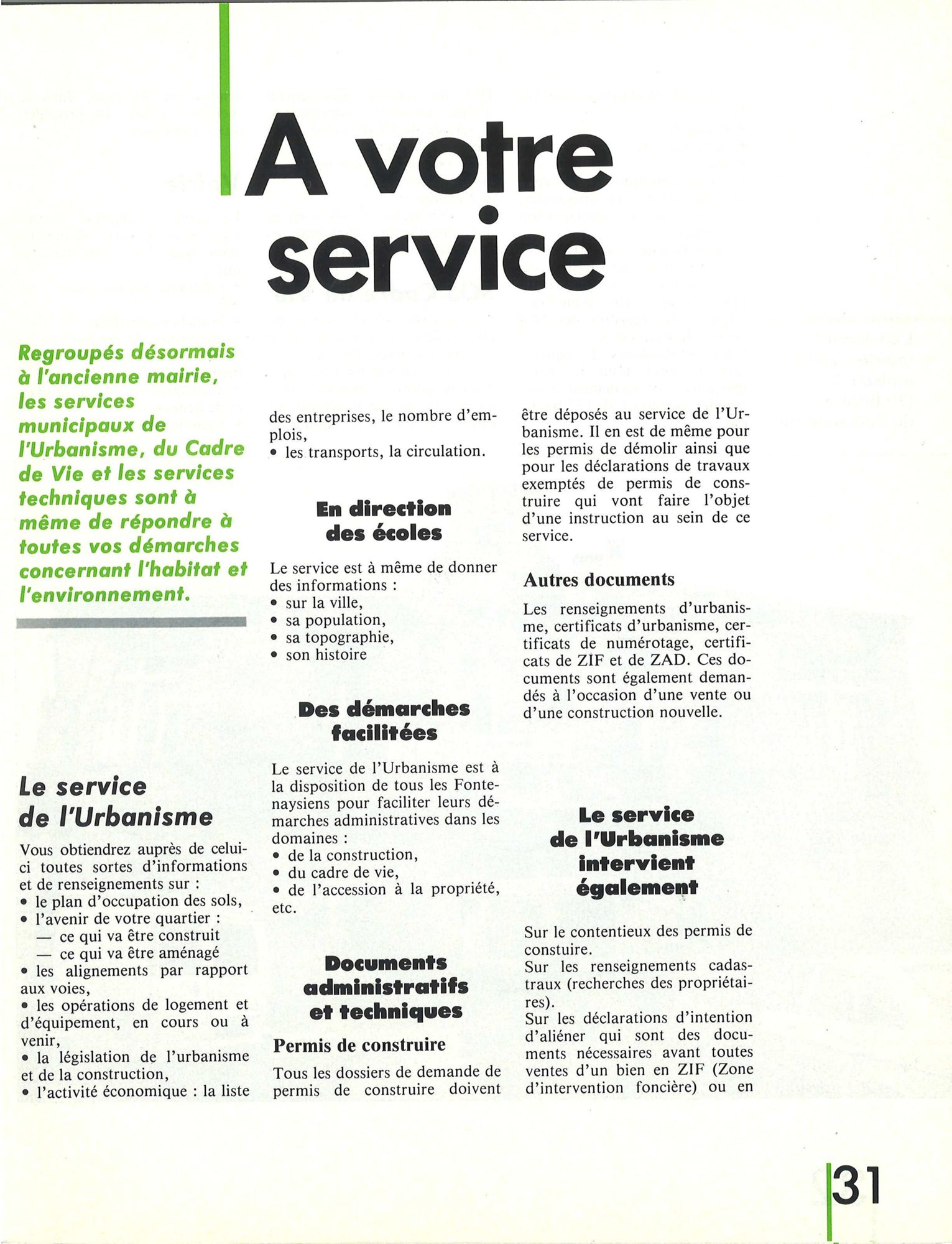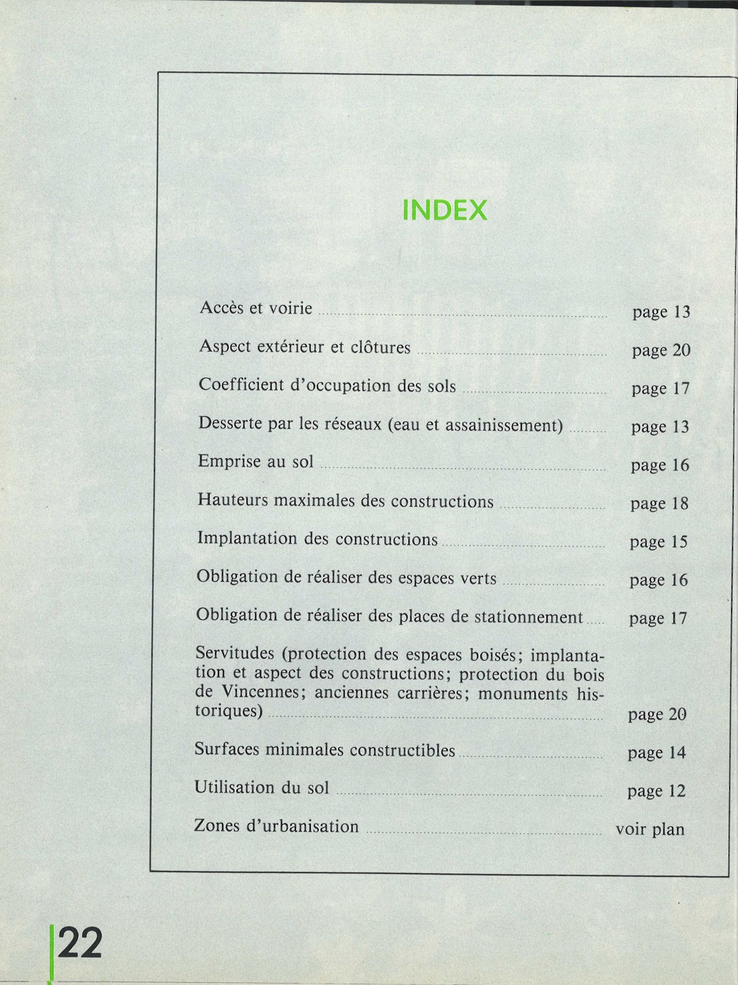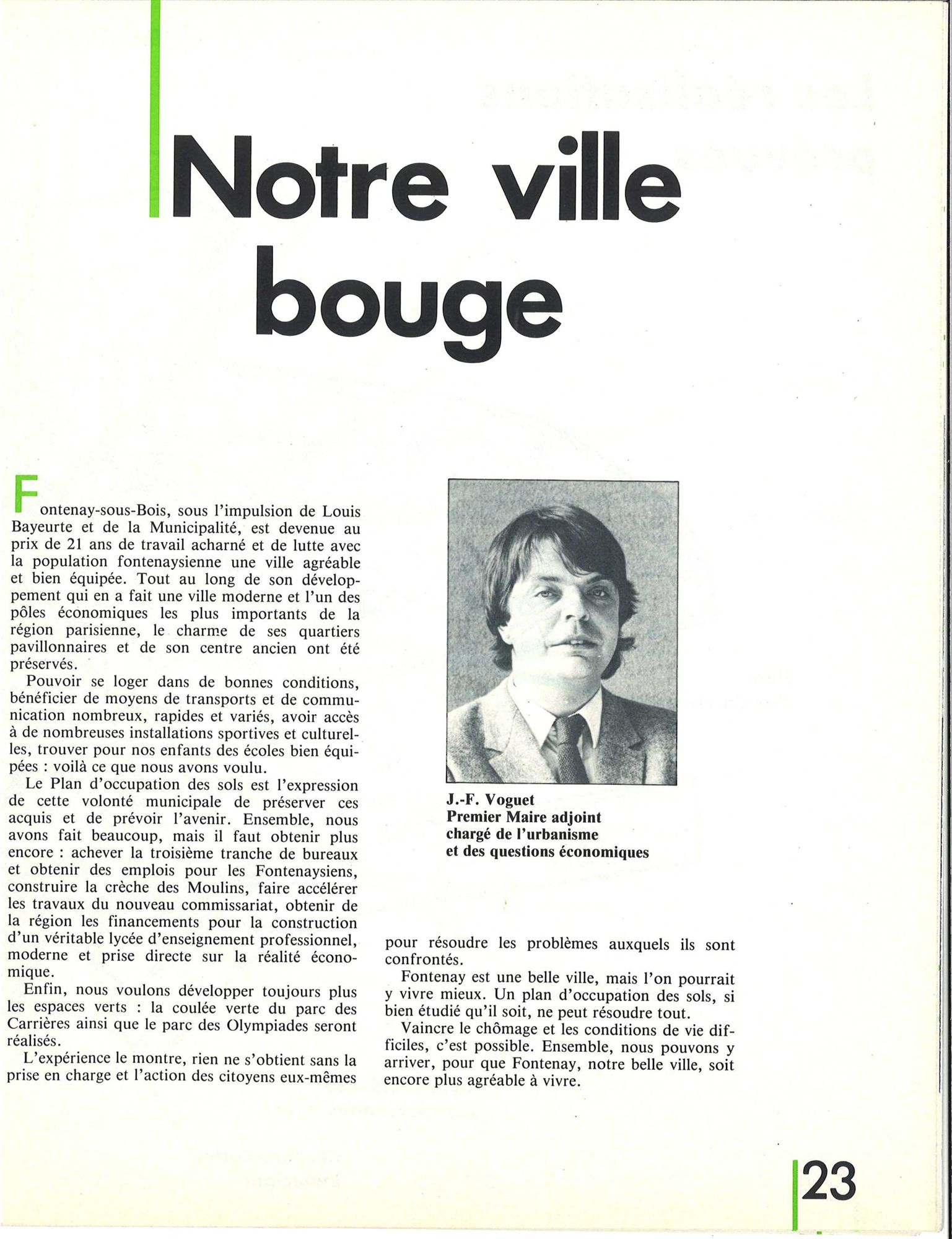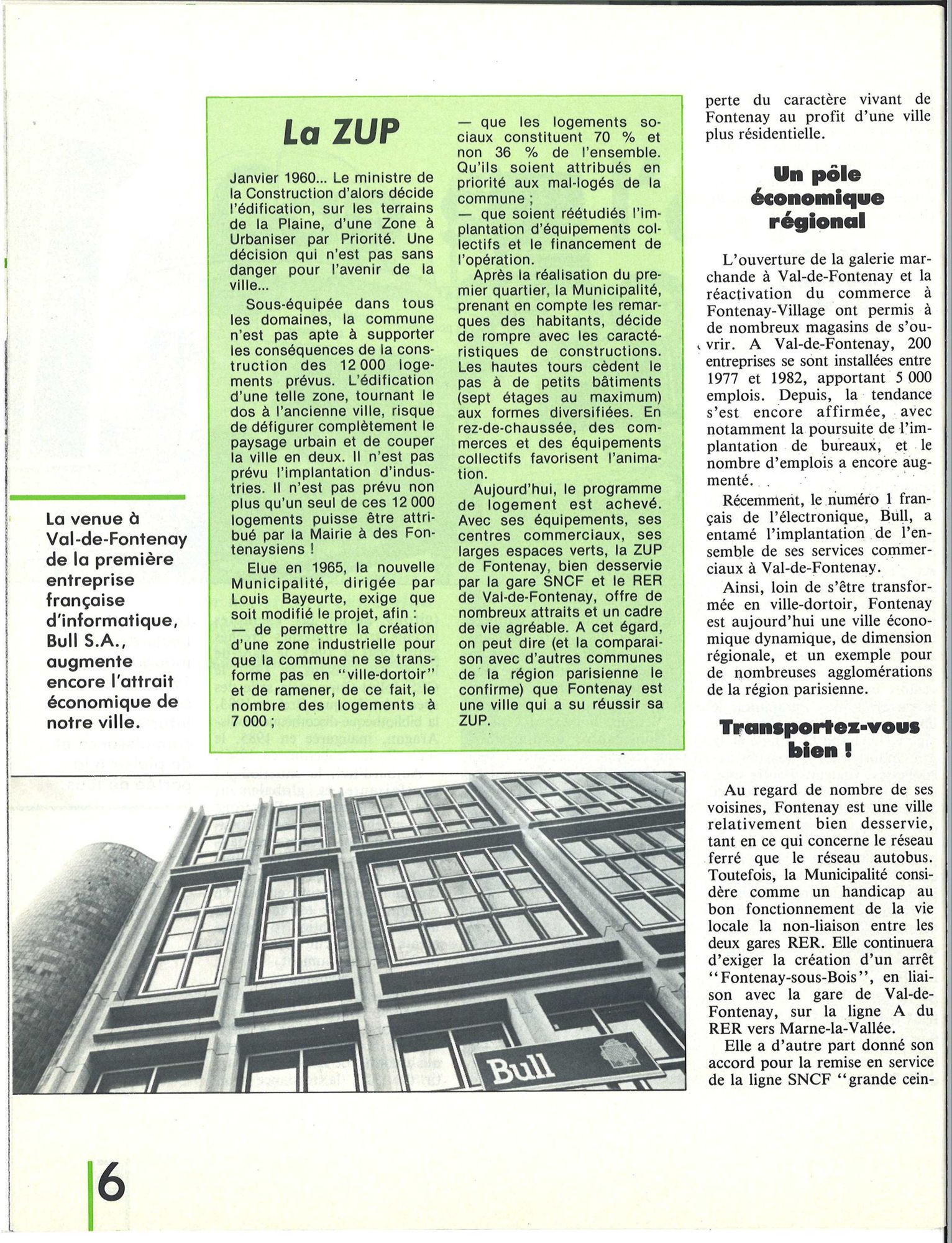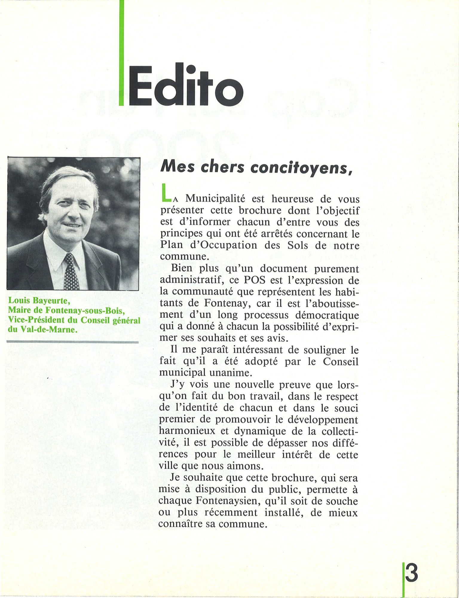 Dans la cadre d'une enquête publique qui a lieu en octobre et novembre 1985, la Ville de Fontenay-sous-Bois publie une plaquette de présentation du Plan d' Occupation des Sols (P.O.S.) en 1985.